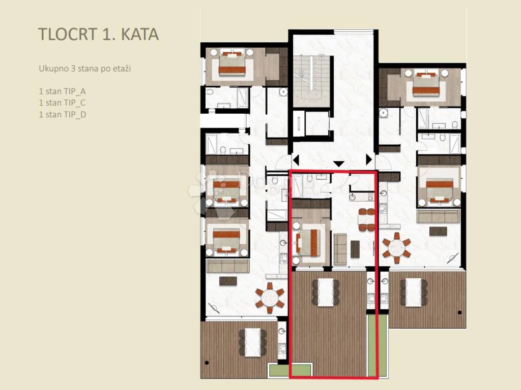 Enjoy a luxurious lifestyle in the sunny city of Novigrad, where every apartment will have spacious and covered terraces that will make your stay in the open air even more pleasant and soothing, with an unforgettable view of the sea and the city on the 1st floor.