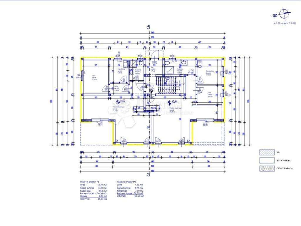 Ukupna površina prostora iznosi 62,55 m, a sastoji se od: