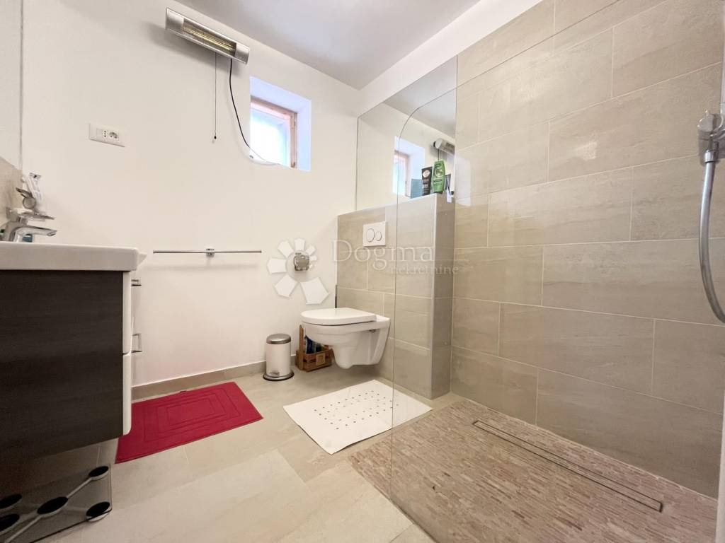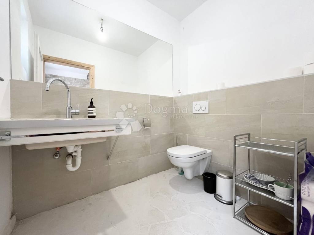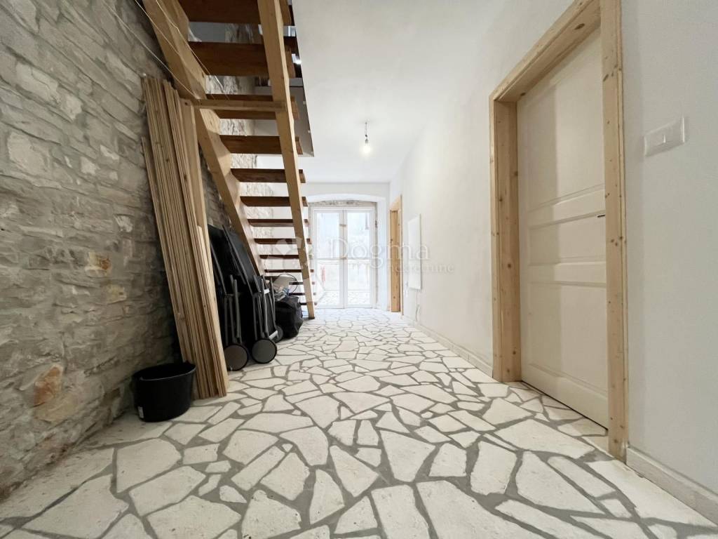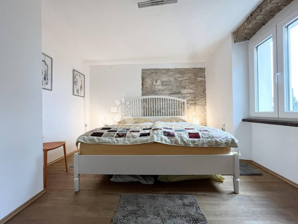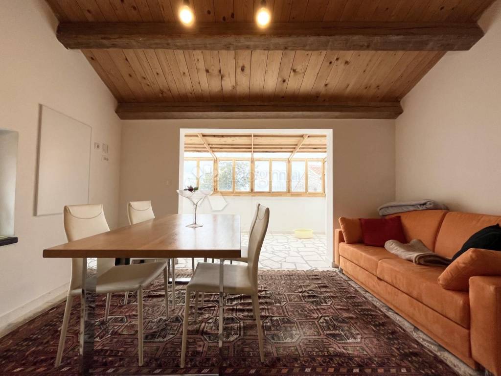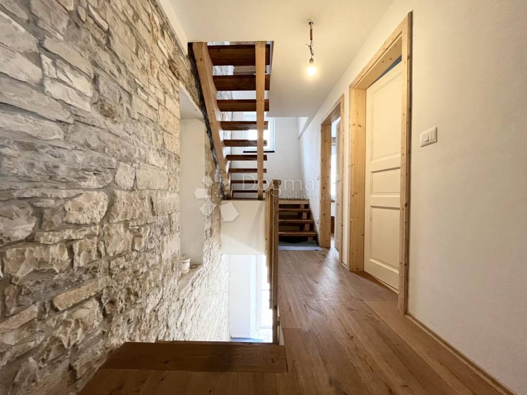 We are selling a completely renovated stone house in the center of Buje. It consists of 3 floors. On the ground floor there is an entrance area, toilet and storage/laundry room and access to a small private yard where you can put a jacuzzi (all installations ready). Stairs lead to the 1st floor where there are 2 bedrooms and a bathroom. Stairs from the 1st floor lead to the 2nd floor where there is a spacious open space living room, kitchen and dining room with access to a glazed terrace with a beautiful view.
