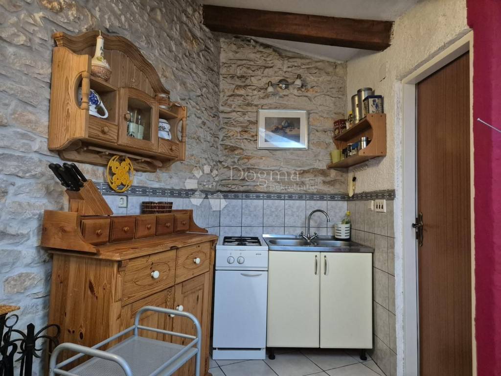 We present to you this beautiful Istrian authentic terraced house, located in a quiet village near Marčana, only 2000 meters from the sea. The house is spread over three floors, with a total area of 198 m, each floor of 66 m, and is fully decorated in Istrian style, with quality wooden furniture and wooden beams on the ceilings, which creates a warm and authentic atmosphere. On the ground floor there is an entrance hall, from which you can access the bathroom, spacious living room and kitchen with additional storage and pantry. The staircase leads to the first floor, which has two spacious bedrooms, a bathroom and a small kitchen. This floor has a very functional layout, so with minimal investment it can be converted into a separate apartment, which would include a bedroom, living room, kitchen and bathroom. On the second floor there is an open space area with a dining table, kitchen and a beautiful open fireplace. Here you will also find a storage room where firewood is stored, a bathroom and a bedroom with its own storage space. The house also has a shared yard with a total area of 110 m, or 3 parking spaces. The house was completely renovated in 2013, including the renovation of all installations (water and electricity) and the roof. This property is ideal for a family looking for a spacious home or as a tourist investment due to its functionality and authentic style. Proper documentation, clear ownership. For any questions or necessary information, please contact us at: Katarina Vlašić Licensed agent +385 95 88 09 208 katarina.vlasic@dogma-nekretnine.com