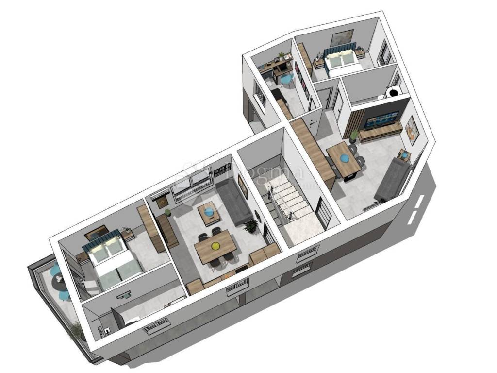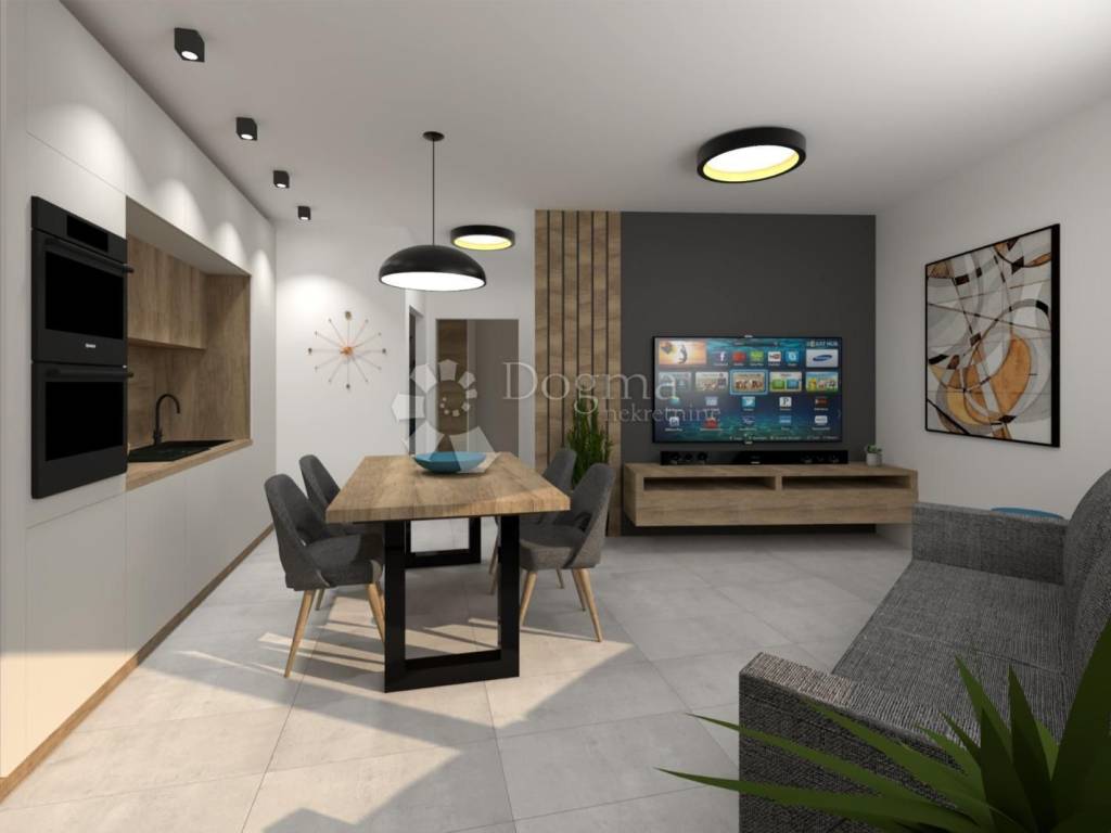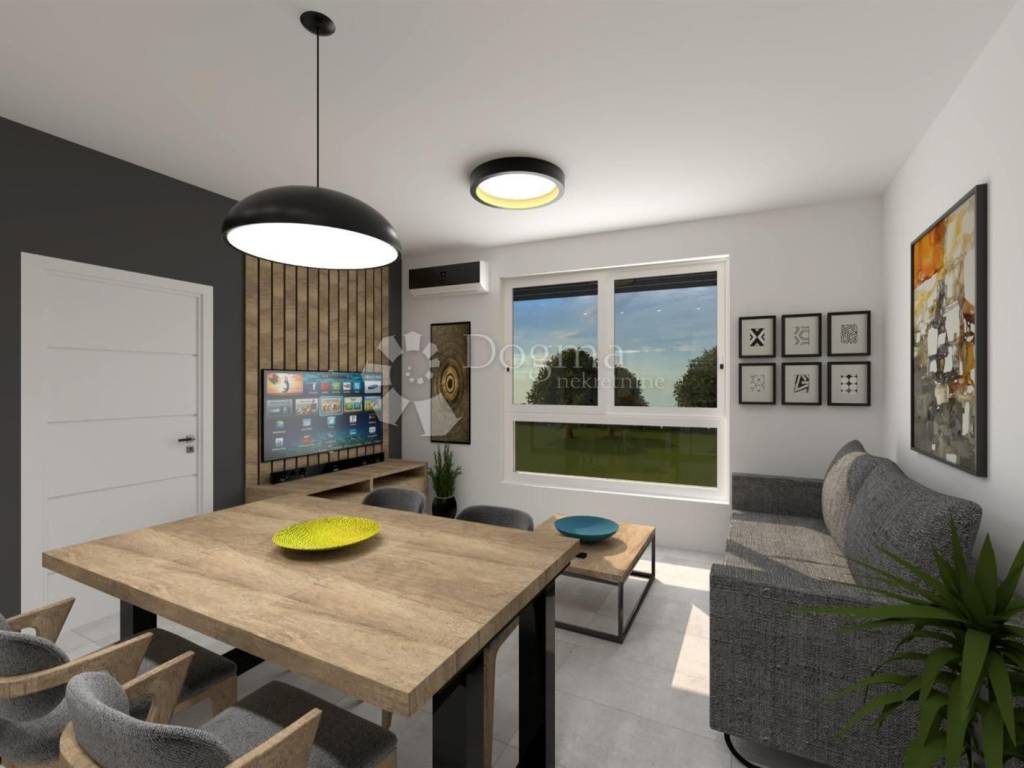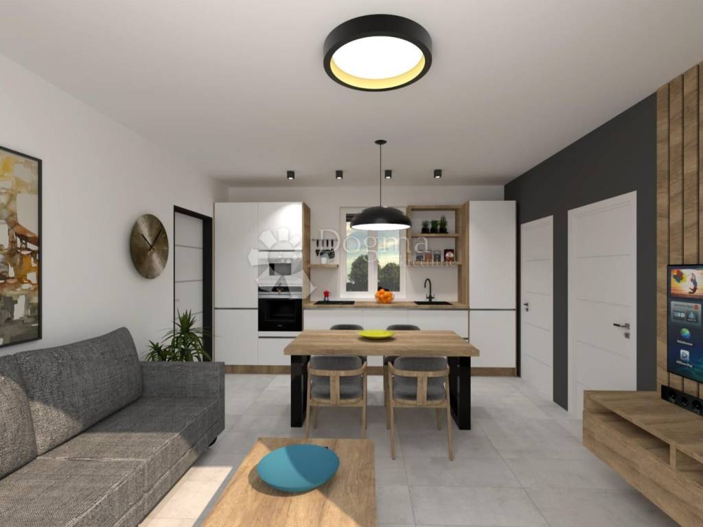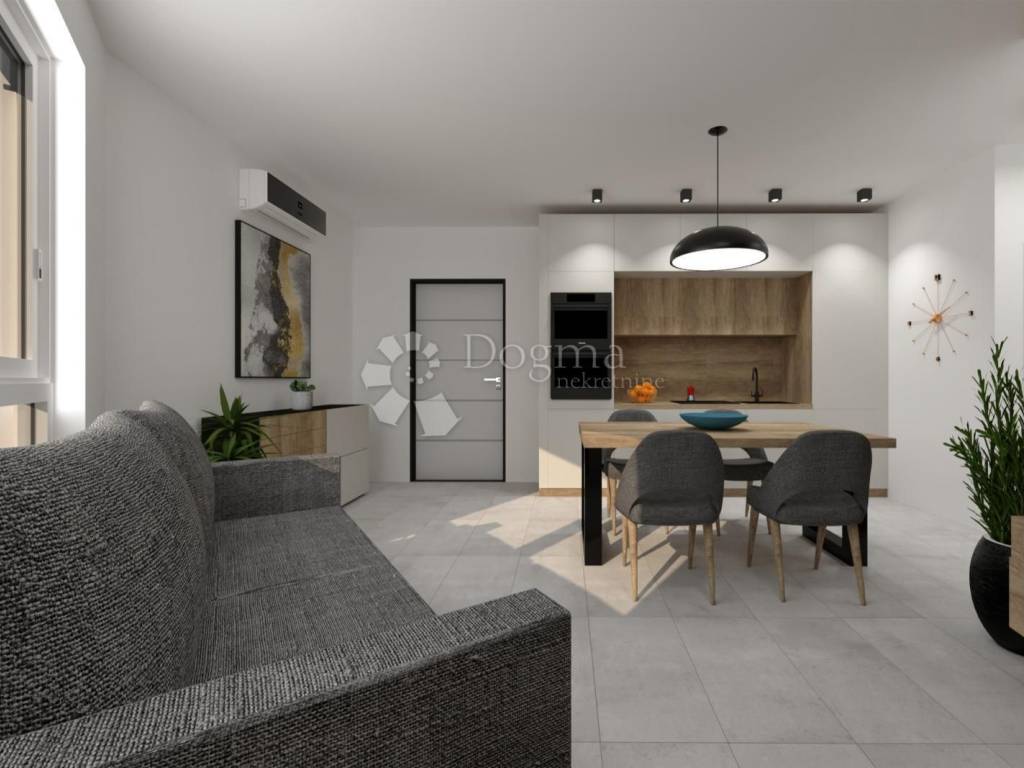 Apartment for sale under construction Location: Suburban settlement, only 3 km from the city center. Building: Small residential building with a total of 4 apartments, providing a quiet and intimate living environment. Floor: The apartment is located on the 1st floor. Property area: Total area (according to the floor plan): 62.51 m Net living area: 47.82 m Storage: On the ground floor of the building. Garage: Area 29.37 m (calculated according to the coefficient: 14.69 m). Layout: Living room with kitchen. Two bedrooms. Bathroom. Additional information: The apartment is designed in a modern design and is built from quality materials. The investor has many years of experience, and for an insight into the quality of construction, it is possible to view already completed projects. Options: Possibility of purchasing a furnished apartment by agreement. Payment: In accordance with the stages of construction. For additional information or a viewing, please feel free to contact us! Filip Crnjac +385 091 600-1216 filip.crnjac@dogma-nekretnine.com