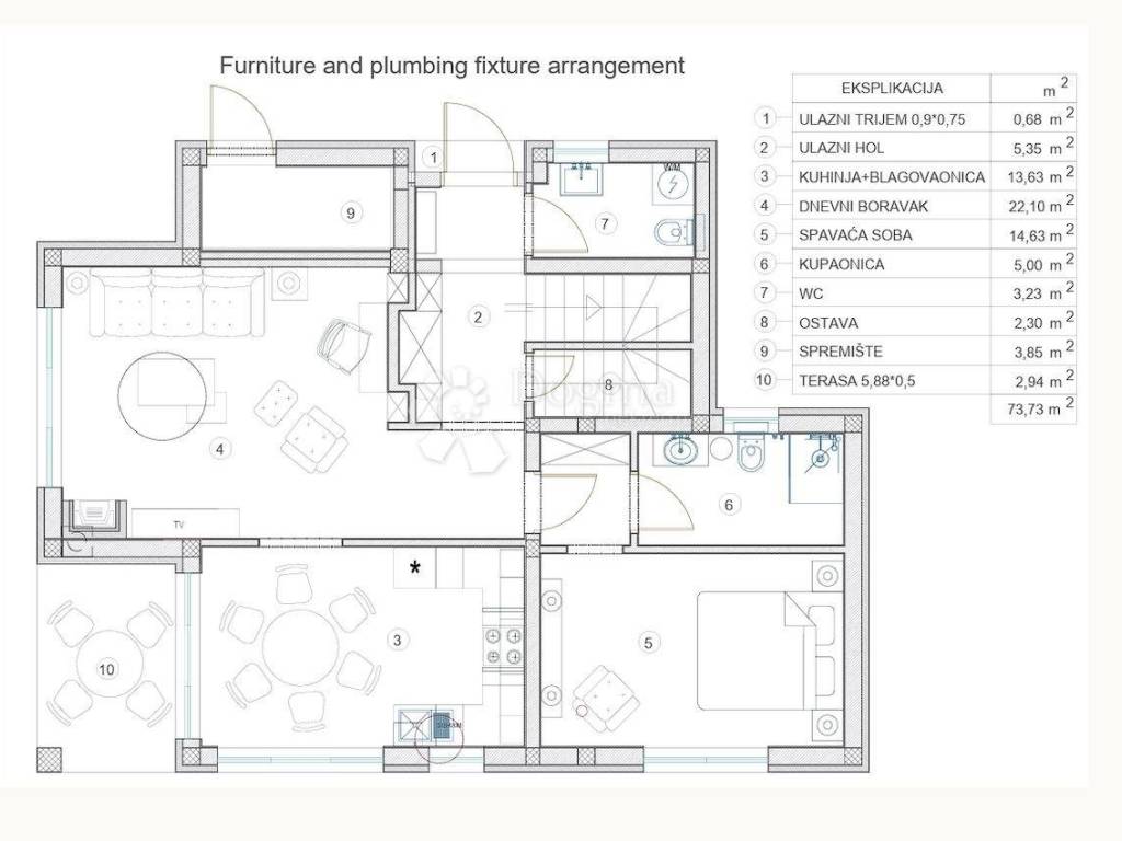 Discover your new oasis of peace near Tinjan with this beautiful house under construction, which will encompass a total of 127 m of living space on a plot of 502 m. The planned completion of the construction is in 2025, offering you the opportunity to participate in shaping your future home.