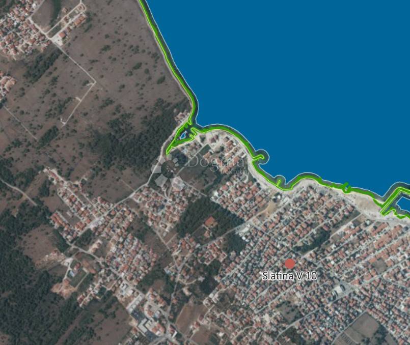 Građevinsko zemljište od 7404 m2 udaljeno od mora manje od 40 metara. Odlična lokacija na predjelu Slatine. Postoji lokacijska informacija u kojoj stoji da se građevinska čestica nalazi unutar granica građevinskog područja naselja-neizgrađeni dio. Ne postoji posebni režim korištenja prostora.
