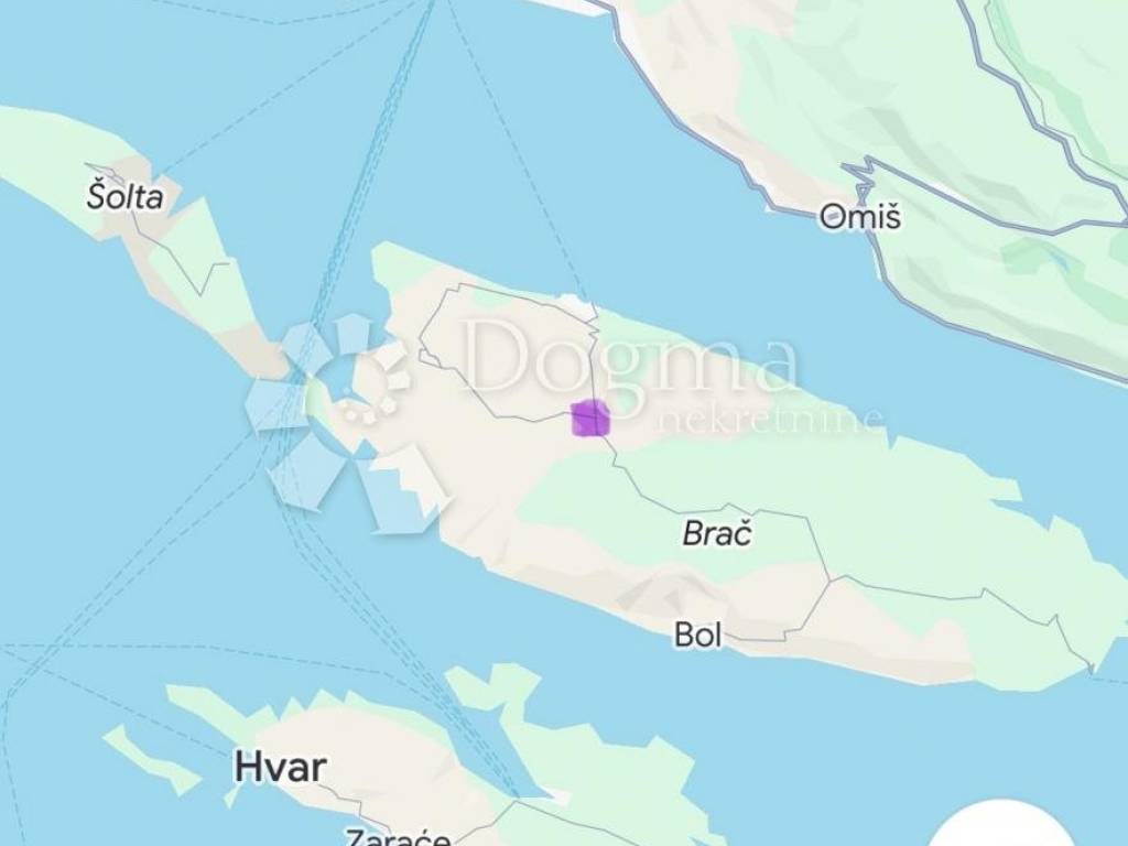 Prostrana parcela, građevne namjene i površine 2343 četvronih metara, nalazi se na otoku Braču, poznatom po sintezi bogatog kulturno-povijesnog nasljeđa i prirodnih ljepota.