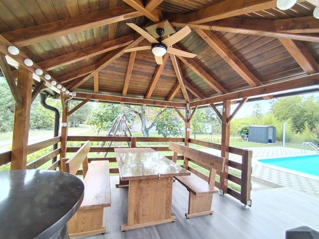 - Covered gazebo with ceiling fan