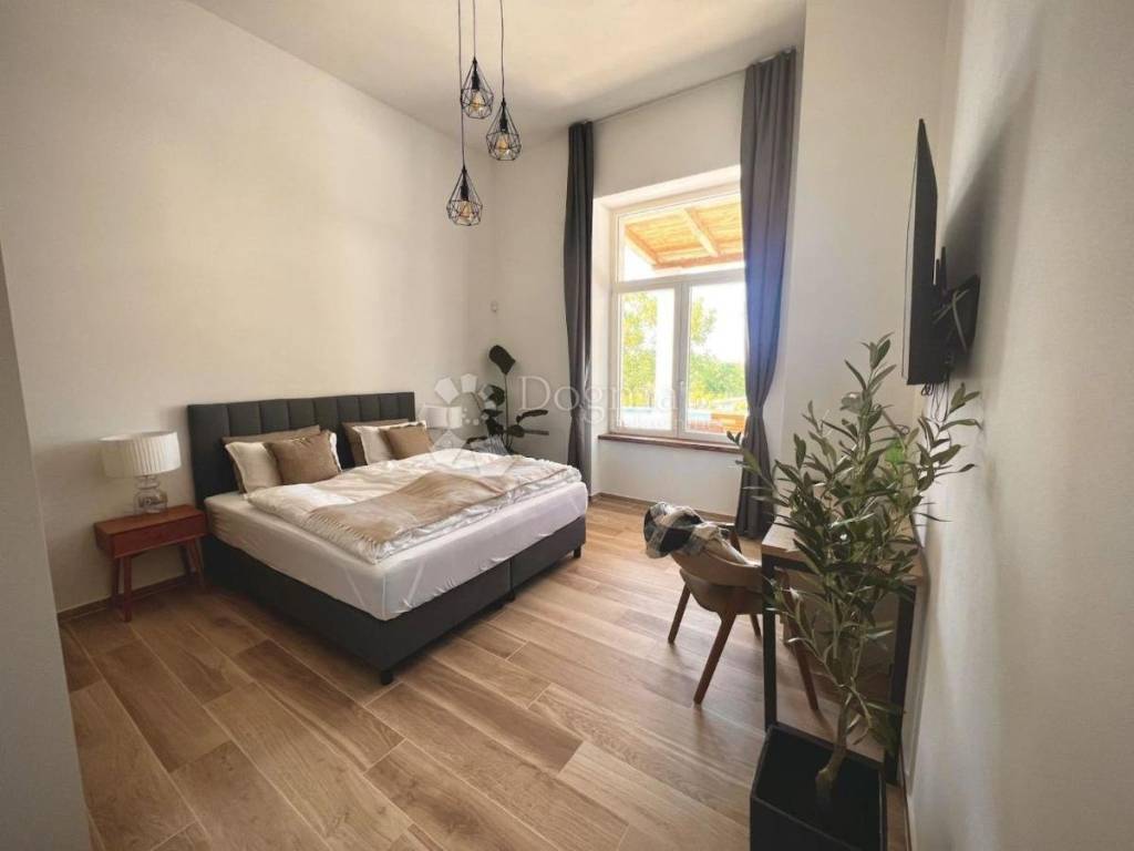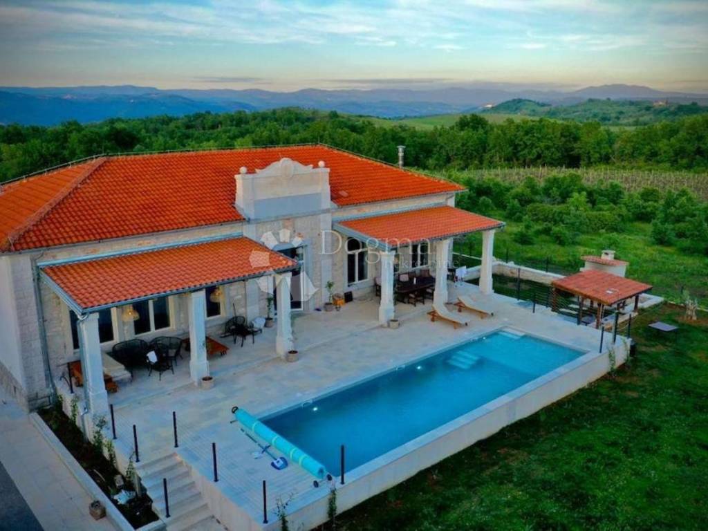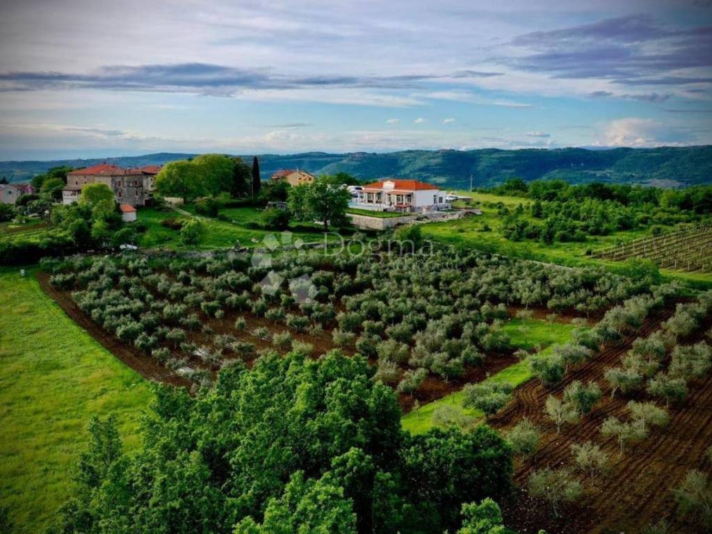 In the vicinity of the city of Poreč, a beautiful stone villa is for sale located on a hill, surrounded by olive groves and vineyards.