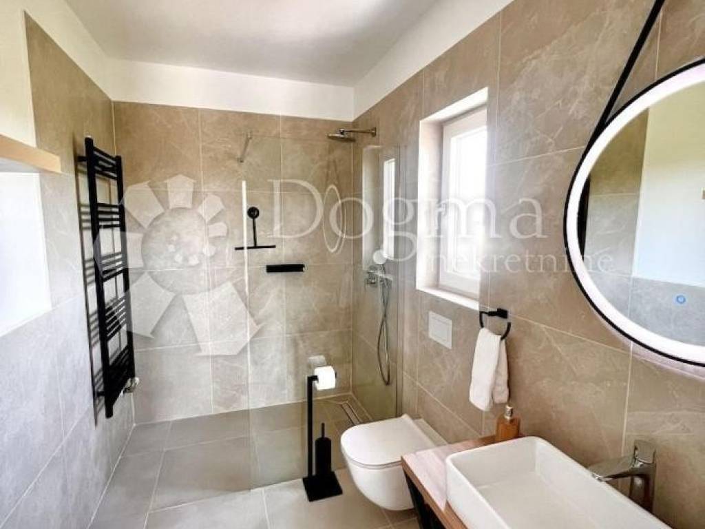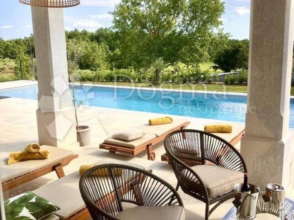 This villa has an impressive garden of 1640 m. On the outdoor terrace, there is a dining table with 8 chairs on one side and an area for relaxing and drinking coffee on the other. A heated saltwater pool and 12 deckchairs are available for enjoying the sun. If you like to cook outdoors, don't worry, it's also covered - there is a summer kitchen with a wood-burning grill on the lower terrace. In addition to the outdoor relaxation area, the villa also offers an indoor wellness area with a Finnish sauna, which you can enjoy regardless of the weather. Whether you are staying in the villa or outside, you will have a constant view of the vineyards and the impressive nature that surrounds it. Its location is a good starting point for exploring the beauties of Istria, either on the coast or inland. Nearby are Poreč and Novigrad, cities by the sea that will enchant you with their architecture, and on the other side there are Motovun and Grožnjan, cities with a rich cultural heritage and colorful landscape.