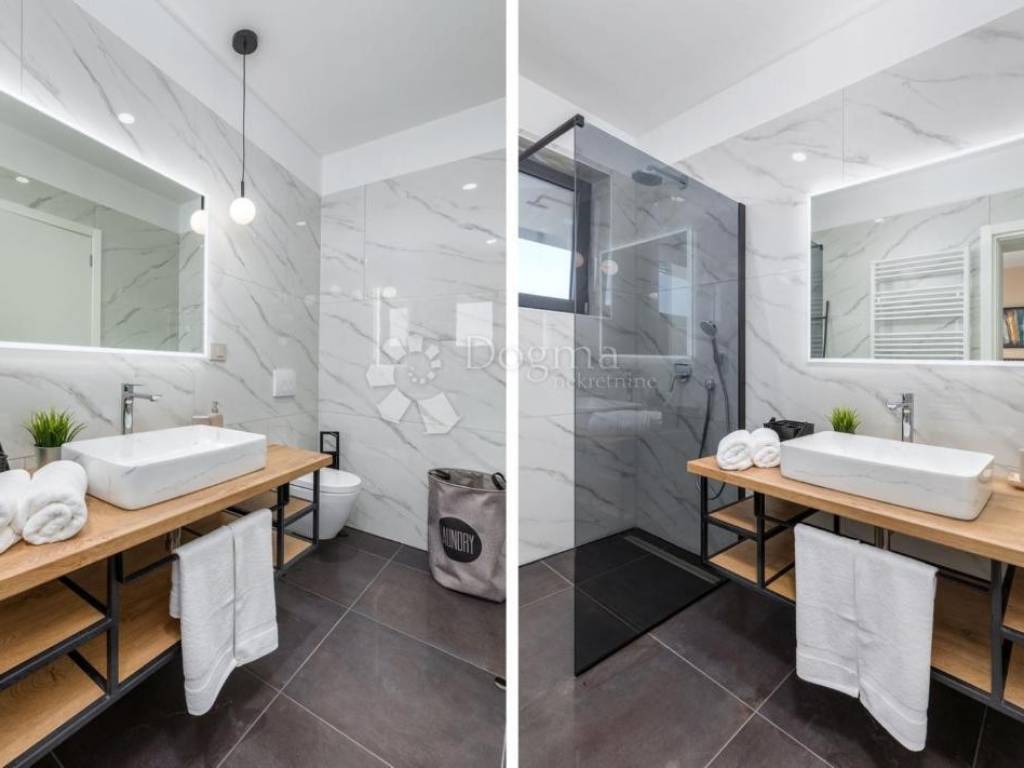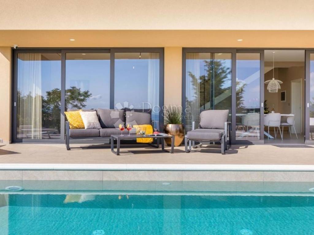 An impressive villa with a swimming pool is located in a quiet and picturesque corner of eastern Istria, where nature intertwines with luxury. Surrounded by greenery that slopes down to the sea, this villa covers 200 m2 of living space and offers a perfect symbiosis of sophisticated and natural elements.