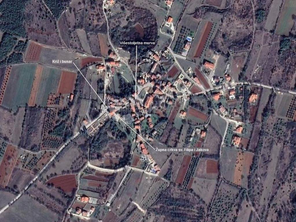 Upravo na tom području prodaje se prostrano poljoprivredno zemljište idealno za uzgoj različitih poljoprivrednih kultura (masline,vinova loza...)Smjestilo se na mirnom djelu mjestašca daleko od gradskih gužvi.