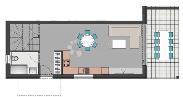 The apartment will be equipped with air conditioning in every room, 12 cm of insulation and PVC carpentry with double-layer double-sided painted glass (white-anthracite) filled with argon, which ensures optimal temperature throughout the year, regardless of whether the hot Adriatic summer warms you or the cold Velebit winds sway you. For complete optimal simplicity, the blinds will be electric.