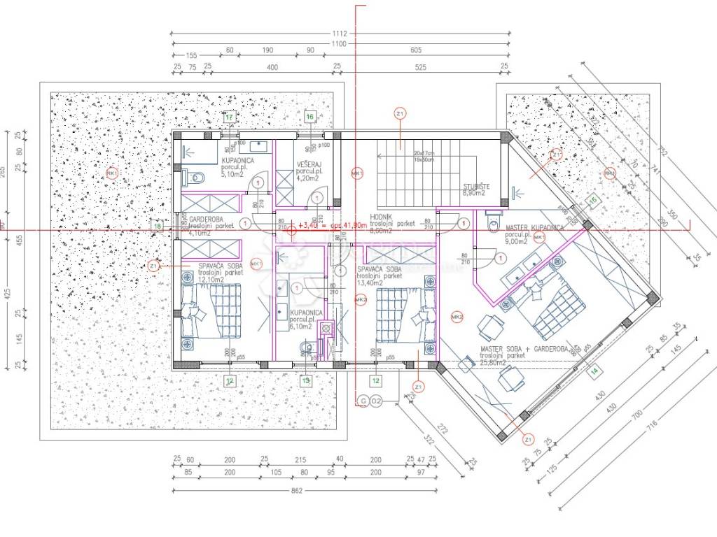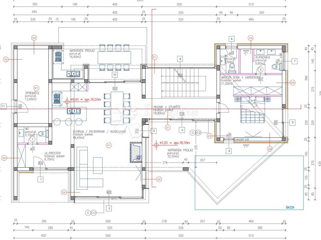 The gross area of the ground floor is 177,805 m2, while the net area is 138,76 m2, giving you a spacious open plan living area, kitchen, dining room and much more.