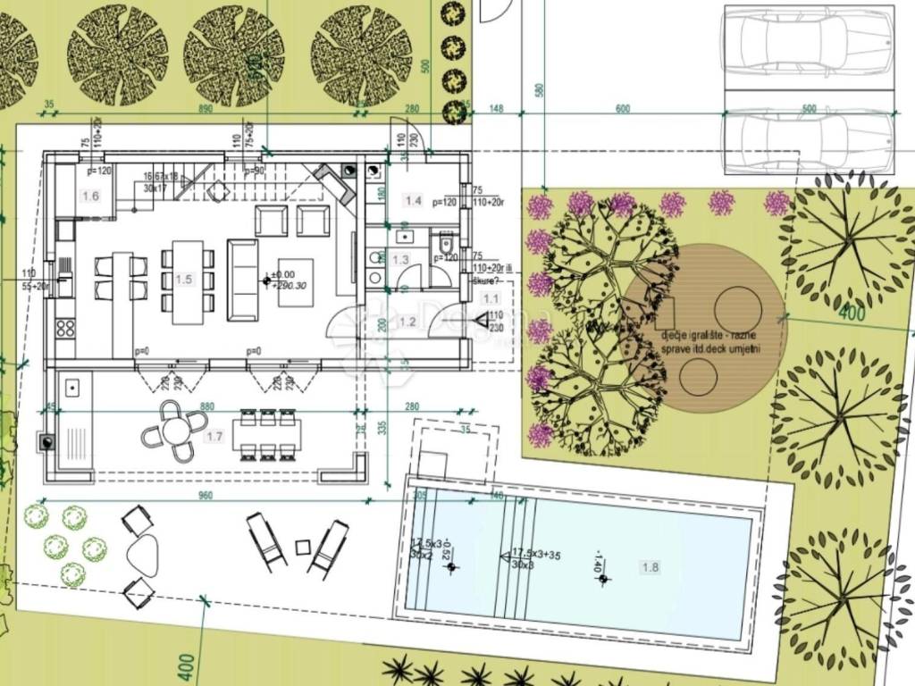 Ovo iznimno kombinirano poljoprivredno i građevinsko zemljište, smješteno u predivnom Istarskom mjestu Orihi, predstavlja jedinstvenu priliku za realizaciju projekta kuće za odmor. S ukupnom površinom od 1510 m2, od čega je 700 m2 građevinsko zemljište, posjeduje već ishodovanu građevinsku dozvolu za izgradnju kuće s bazenom. Ukupna bruto površina planirane vile iznosi 180 m2, dok korisna površina čini 150 m2.