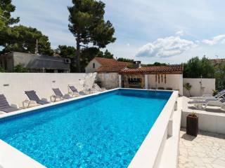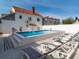 The apartments are carefully decorated with modern furniture and quality materials. Each apartment has its own kitchen, living room, bedrooms and bathroom, providing guests with privacy and comfort. The spacious terrace and balconies offer the perfect place to relax with a morning coffee or an evening sunset. The villa has three apartments with well-established operation during the tourist season, and the total capacity is 10 people. There are two apartments on the first floor, one has 70 m2 with two bedrooms, a kitchen and a living room with access to the terrace and a bathroom. The second apartment has 60 m2, two bedrooms, a kitchen with a living room and a bathroom. On the ground floor there is a studio apartment of 30 m2. The villa also has two smaller apartments in the area, which can also be used for rent. The central part of the villa is surrounded by a beautifully landscaped garden with a spacious swimming pool. Deck chairs and umbrellas invite you to enjoy refreshing moments by the pool, as well as a beautiful view.