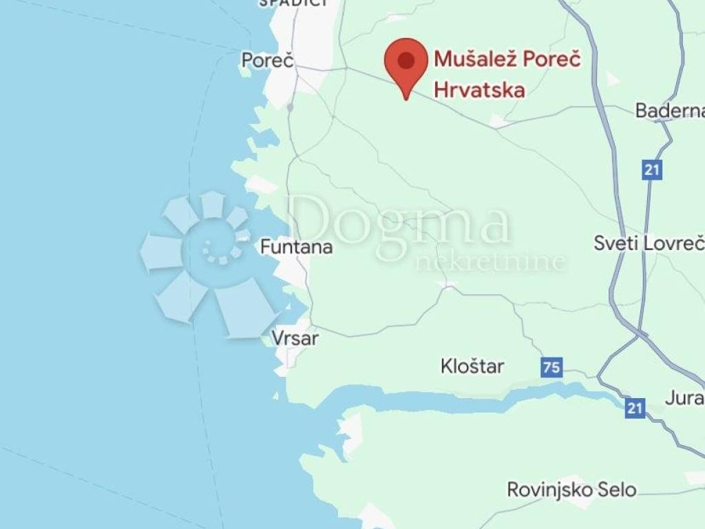 Mediteranska parcela locirana je u naselju Mušalež, samo 2 km udaljena od mora i obala Poreča. Ova poljoprivredna parcela, idealna za sadnju maslina i mediteranskog bilja, pravokutnog je oblika i ravna, uz lako dostupan pristupni put.