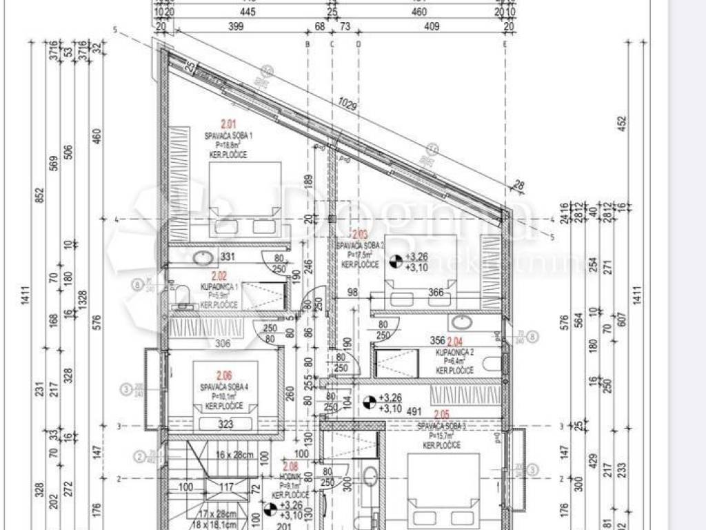 On the first floor there are as many as 4 bedrooms (15.7m2, 10.1m2, 17.5m2 and 18.8m2) and three luxuriously equipped bathrooms (6.4m2, 5.9m2 and 4.6m2)