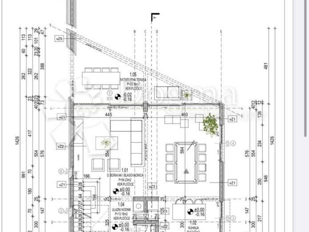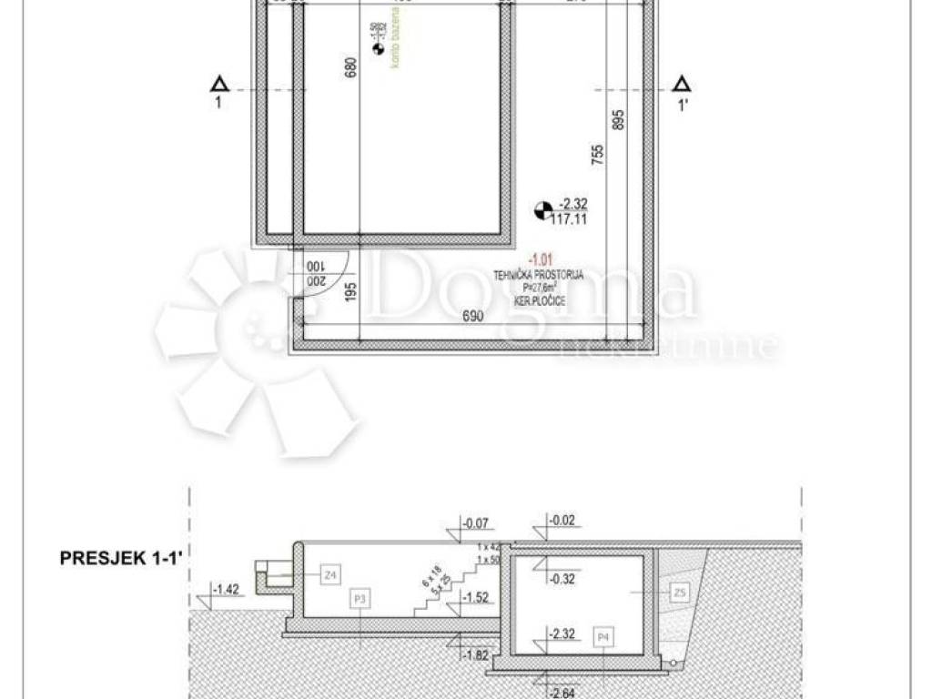 The ground floor includes a large and comfortable 'open space' living room and dining room (54.23m2), a modern kitchen (13.58m2), a designer toilet (2m2), an entrance area (13.18m2) and a spacious covered terrace (22.19m2) ) as if created for summer evenings and watching the fairy-tale scene of the sea, islands, sunrise and sunset, which are, believe me, unreal in this place!