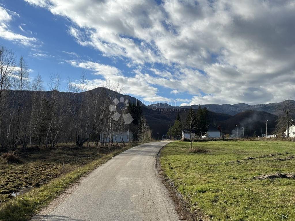 Građevinsko zemljište u okolici Gospića u mirnom i tihom selu Pazarišta oruženo lijepom prirodom s pogledom na šumu i planinu.