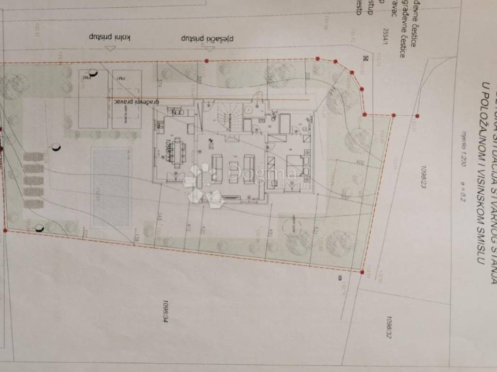 Na zemljištu postoji već pripremljen projekt za prekrasnu obiteljsku kuću s bazenom.