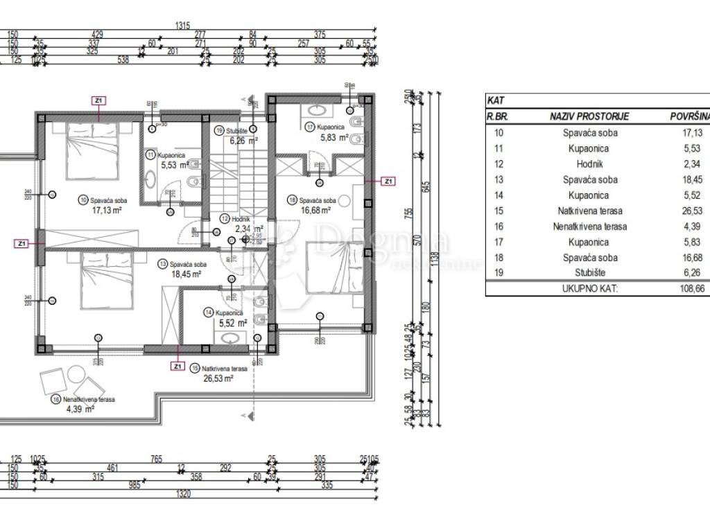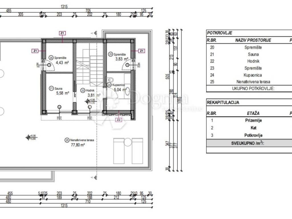 The villa covers 233.13 m of ground floor, 1st floor and attic with access to a spacious terrace with an open view of the landscape and the sea, located on a 548 m plot of land, providing just enough space for organizing the environment and the plot where there is an outdoor pool of 32 m.