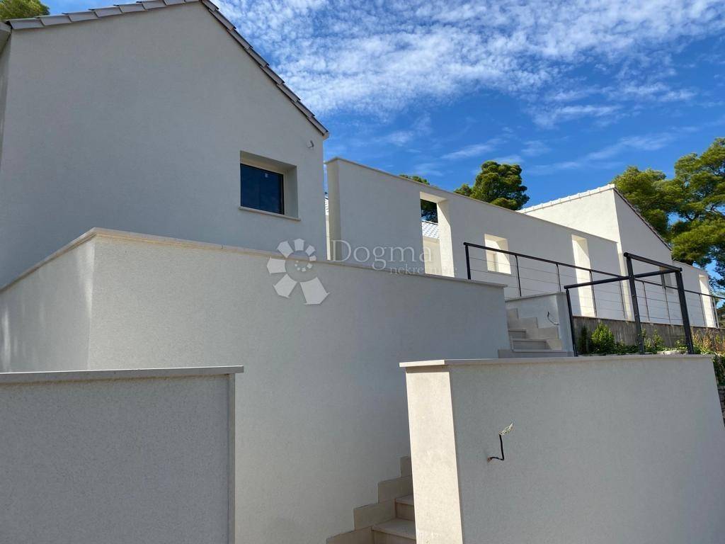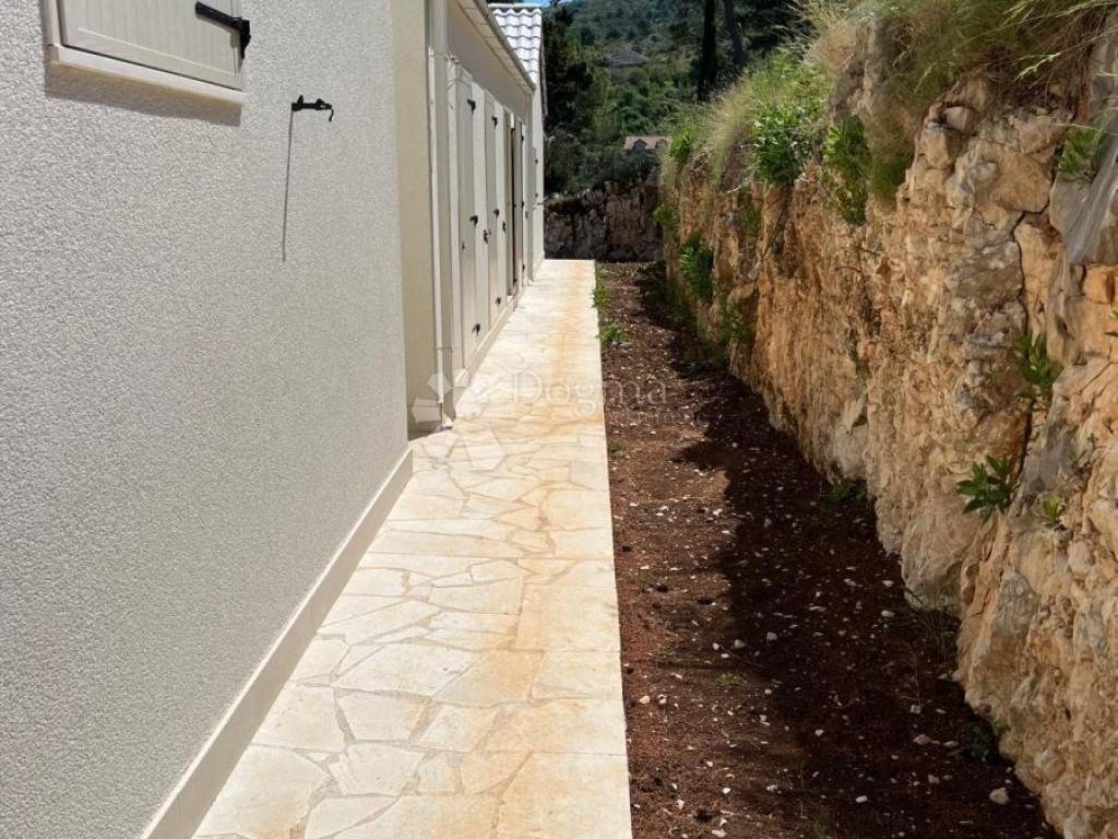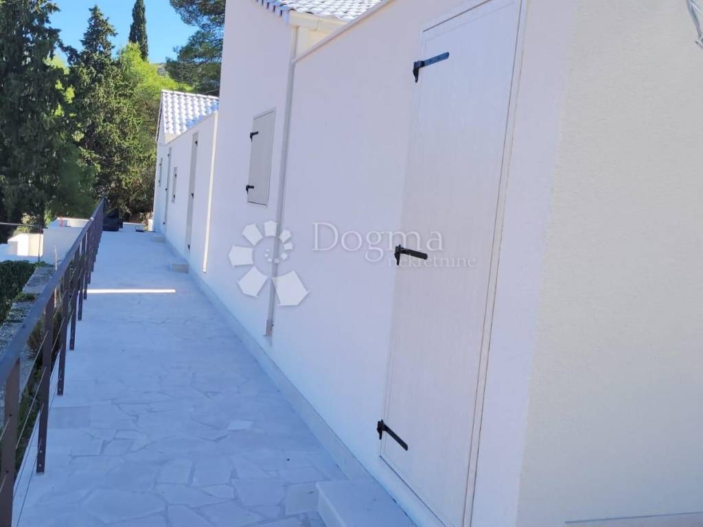 We are selling a unique villa on the island of Brač, located in the picturesque town of Bobovišća. Bobovišća is located at the bottom of a beautiful bay, which branches into several smaller ones, ideal for sheltering boats. This unusual house has 143 m2, and is located on a plot of 678 m2 - the third row from the sea, and is a combination of tradition and modern construction. The house is designed as two separate units. On the ground floor there is an apartment of 40 m2, which consists of an entrance, a living room with a kitchen, a bedroom, a bathroom, a storage room, a service yard and a closed yard. The upper ground floor has 107 m2: it consists of three children's rooms, a bathroom, two corridors, a living room of 43 m2 with a kitchen and a dining room with access to a closed courtyard of 49 m2, and the main bedroom with a wardrobe and a private bathroom. The house is located on the cascading terrain that it follows, so it is surrounded by paths, gardens and closed courtyards. There is also a 22m2 swimming pool in front of the house. The house is extremely well built: underfloor heating with a heat pump, top-quality aluminum carpentry and high-quality ceramics, and is sold in a high degree of completion (high Roh-bau). Only the final interior works remain, which represents an opportunity for a personal touch and customization of the space according to your wishes. An additional advantage of this property is the large garden of 500m2, which offers numerous possibilities for decorating according to your wishes. Next to the house there is another building of 11 m2 that serves as a storage room and a boiler room.