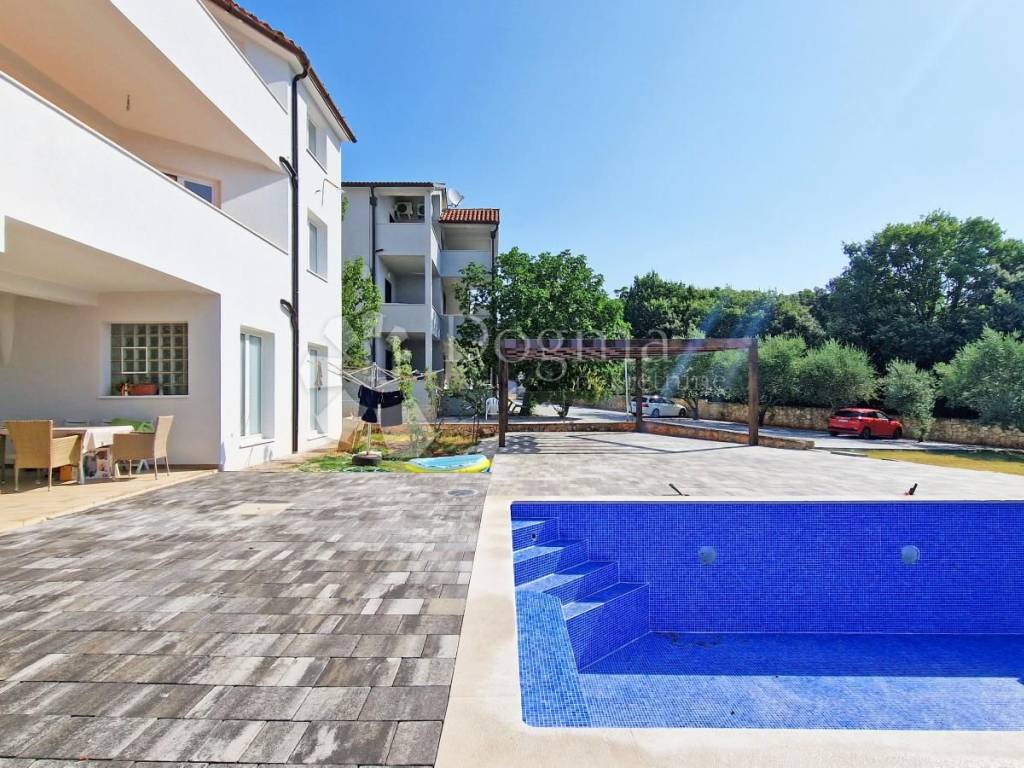 Right in a quiet, well-organized part of Banjol, with a view of the sea, 300 meters from the first beaches, a renovated detached house of 318 m2 with 3 apartments, each apartment of 106 m2 with separate entrances, a shared garden of 515 m2 and a swimming pool, is for sale, consisting of:
