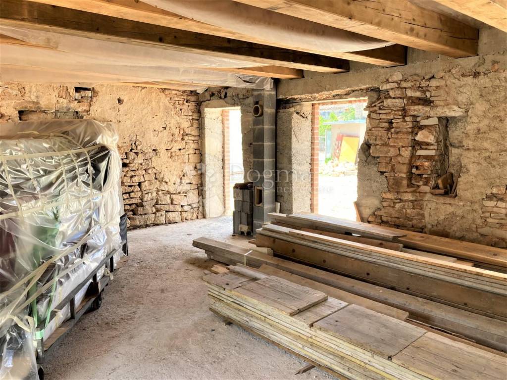 This charming stone house in the vicinity of Savičenta has a surface area of 128.94 m2 and a yard of 167.95 m2. It consists of a ground floor, a first floor and an attic where you can stand without worry.
