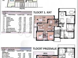 The apartment also includes a smaller apartment on the ground floor of the building, with a total living area of 44.73 m2, which consists of a living room with a kitchen, a dining room, a bedroom, a bathroom and a terrace. The terrace has access to the garden and swimming pool.