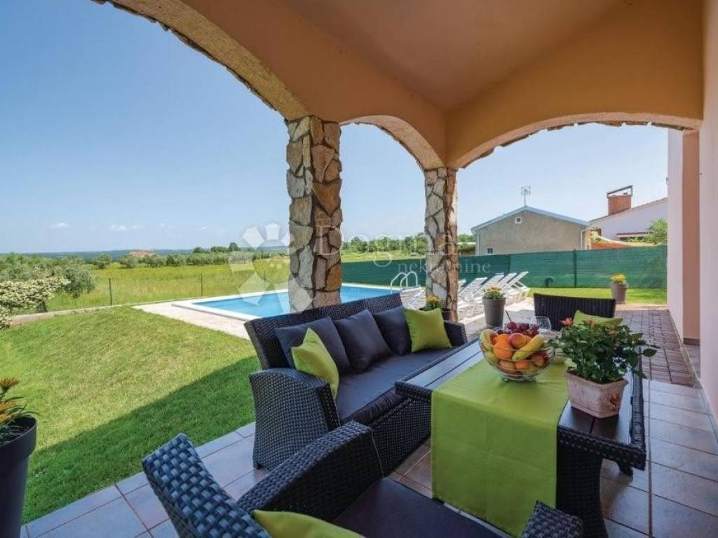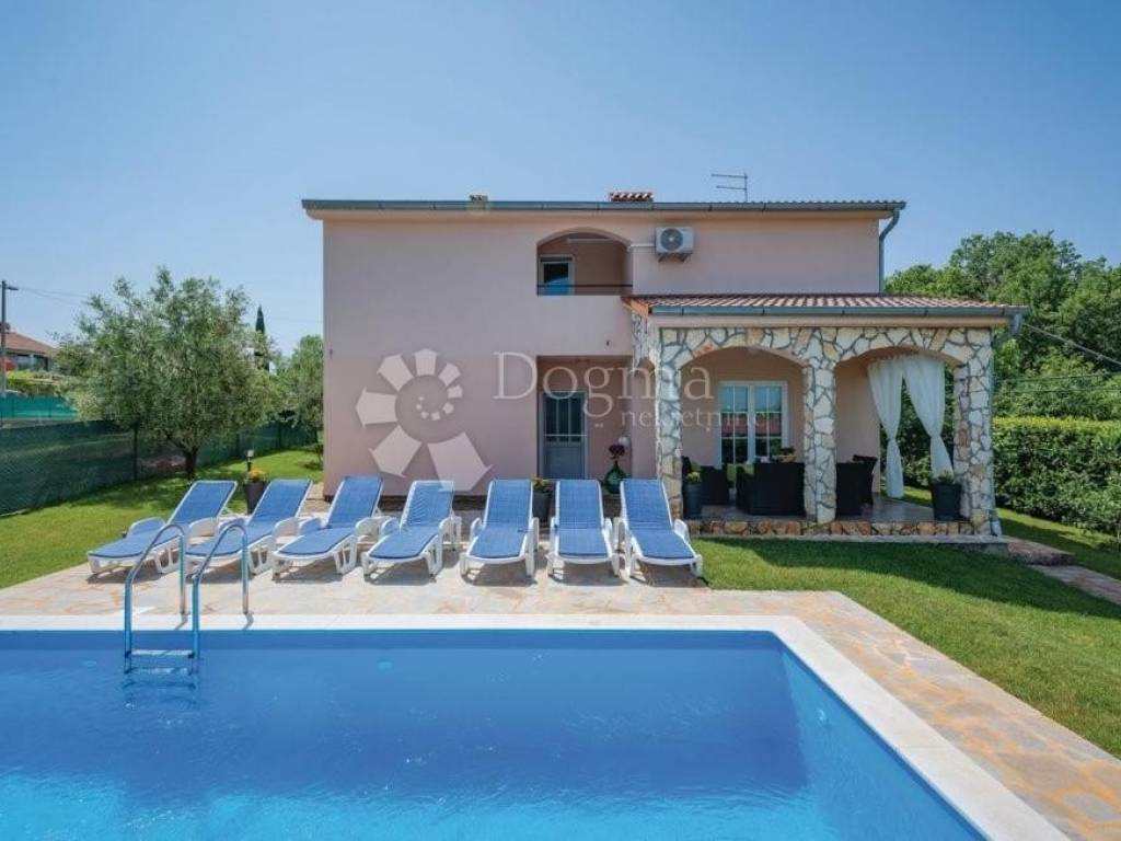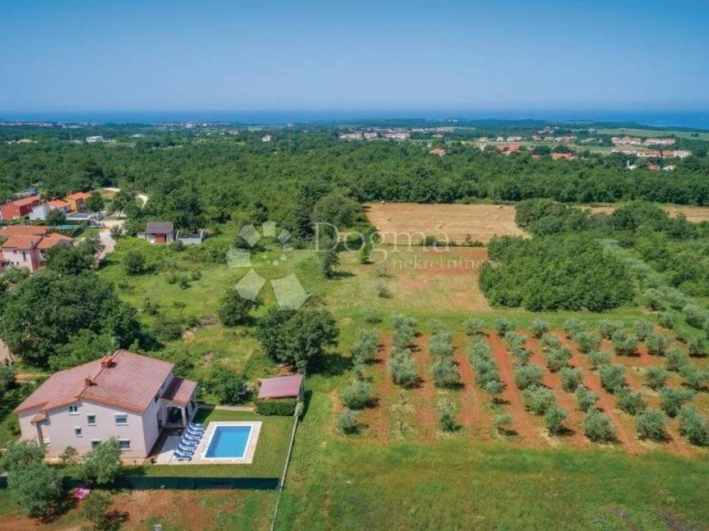 In an extremely quiet location, there is a beautiful detached house with a total area of 193 m2 with plenty of privacy and a view of nature, located on a plot of land of 717 m2 with a swimming pool, only 4 km from the sea and 5 km from the center of Poreč.