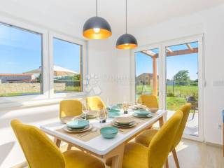 Prekrasna i novoizgrađena prizemnica smještena u mirnom dijelu naselja, pruža idealno mjesto za miran odmor ili boravak u srcu Istre. Kuća je potpuno opremljena sa svim sadržajima potrebnim za ugodan boravak.