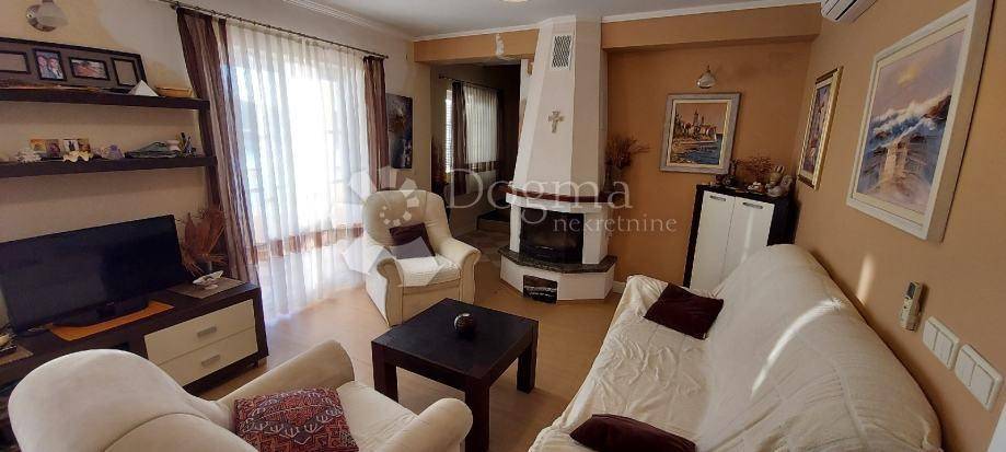 The apartment is oriented to the SW, which is why it has a lot of light and a view of the enchanting sunset, which you can enjoy from one of the two balconies or the boat. The total area of the apartment is 149.16 m2 and consists of: hallway, kitchen with dining room, two living rooms, three bedrooms, balcony and terrace, three bathrooms and a guest toilet. The apartment comes with two covered parking spaces. You can spend your free time with friends in a tavern with a barbecue, which is ideal for long gatherings. There is another toilet in the tavern. In front of the apartment there is a mooring for a boat (electricity and water are connected from the apartment). The berth is for a 15 m boat and one smaller boat. Due to its location, the mooring is safe in winter.