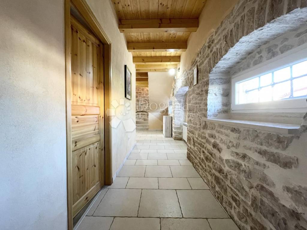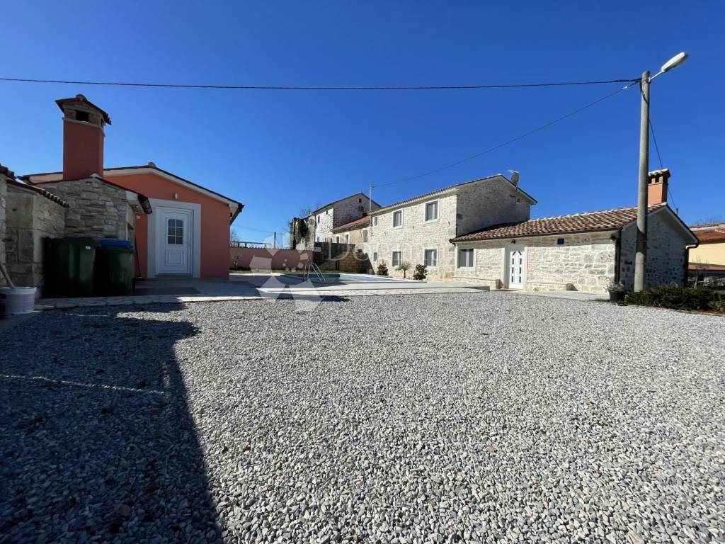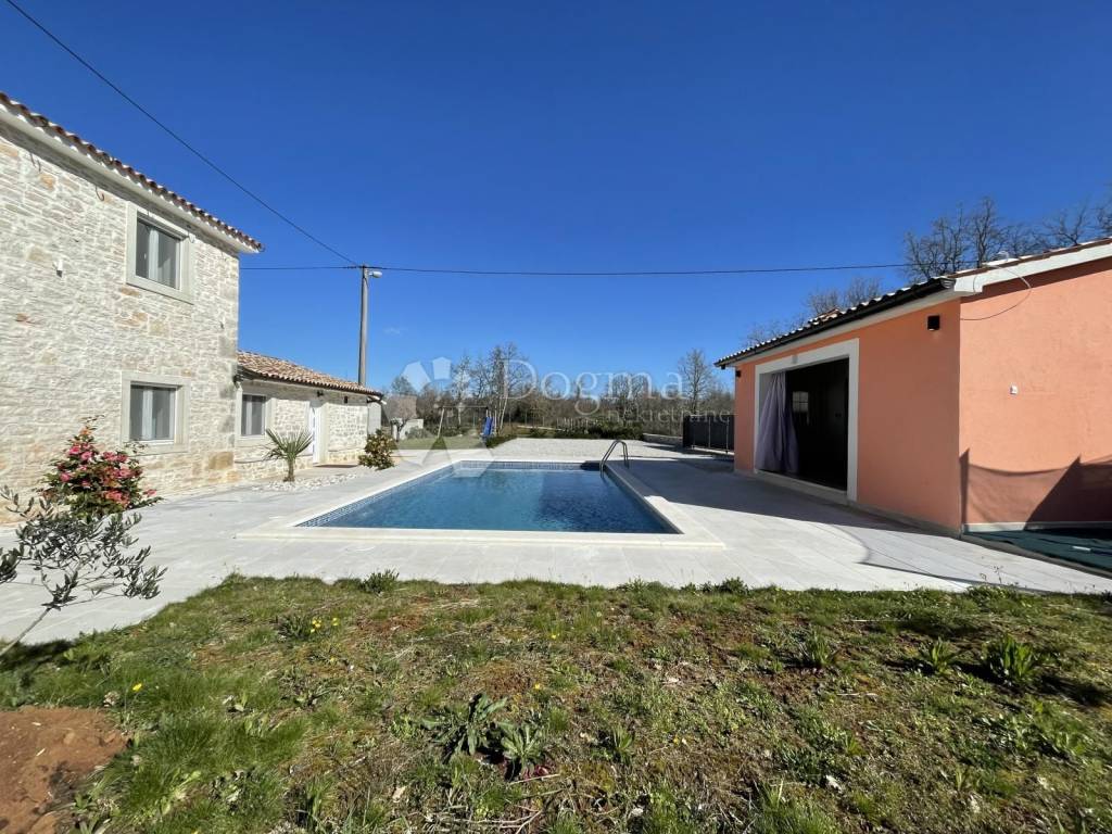 A beautiful property consisting of 2 holiday homes, each with its own swimming pool. In addition, there is a building plot of 700m2 on which it is possible to build another holiday home. House no. 1: Beautifully restored and extended holiday home decorated in the authentic Istrian style (wood and stone) of 150m2. The ground floor consists of a spacious living room, dining room, kitchen with fireplace, 2 bedrooms with a bathroom. A stone staircase leads to the first floor where there are 2 more bedrooms, each with its own bathroom. The house has central heating, inverter air conditioning in each room, quality PVC joinery. In the spacious, fully fenced yard there is a covered terrace with a kitchen, fireplace and another bathroom. The yard is completely paved with Istrian stone. The central place in the yard is occupied by a large swimming pool. House no. 2 under construction: The house is under construction. It consists of a living room with kitchen and dining room, 2 spacious bedrooms, bathroom and spacious terrace. The interior of the building is in the final stage of decoration. Each room has an inverter air conditioner, PVC joinery with mosquito nets. The yard is currently in the decoration phase, the pool is under construction. Building land: Regular-shaped land of approximately 700m2, on a hill with a view of the beautiful surroundings and the sea. Water and electricity in the immediate vicinity of the plot. Possibility of building another holiday home P+1. The houses and plots offer the possibility of engaging in tourism and return on investment with the possibility of building another holiday home or family house. FOR ALL QUESTIONS AND ORGANIZING A VIEWING, CONTACT US WITH CONFIDENCE AT: +385989048333 IGOR NAZAREVIĆ
