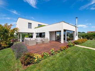 The house has 336 m of living space, it is surrounded by three sunny terraces with a view of the sea, an olive grove, Mediterranean greenery, the sky, the moon and the stars, its gardens are full of flowers and rare plants, it is unexpected and modern, just the kind that most people would like to own and share with family and friends.