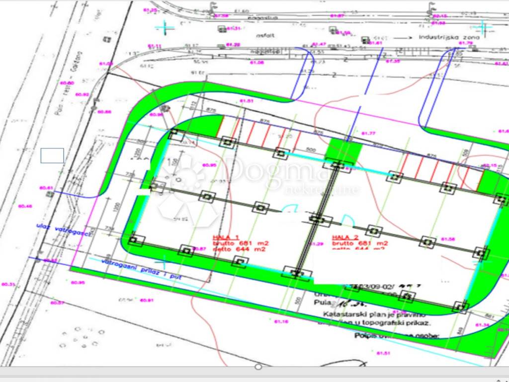 U poslovnoj zoni u Galižani prodaje se zemljište površine 3158 m2 s idejnim projektom za gradnju dvije poslovne hale ukupne bruto površine 681+681m2. Zemljište je pravilnog oblika i vrlo dobro je pozicionirano. Prednost zemljišta je njegova lokacija zbog blizine autoputa i željezničke stanice dok je zračna luka udaljena 15-ak kilometra. Zemljištu se pristupa s dvije strane asfaltiranim putom. Sva infrastruktura nalazi se uz zemljište.
