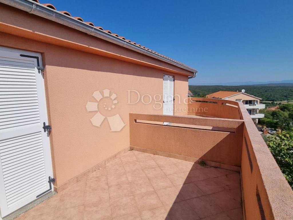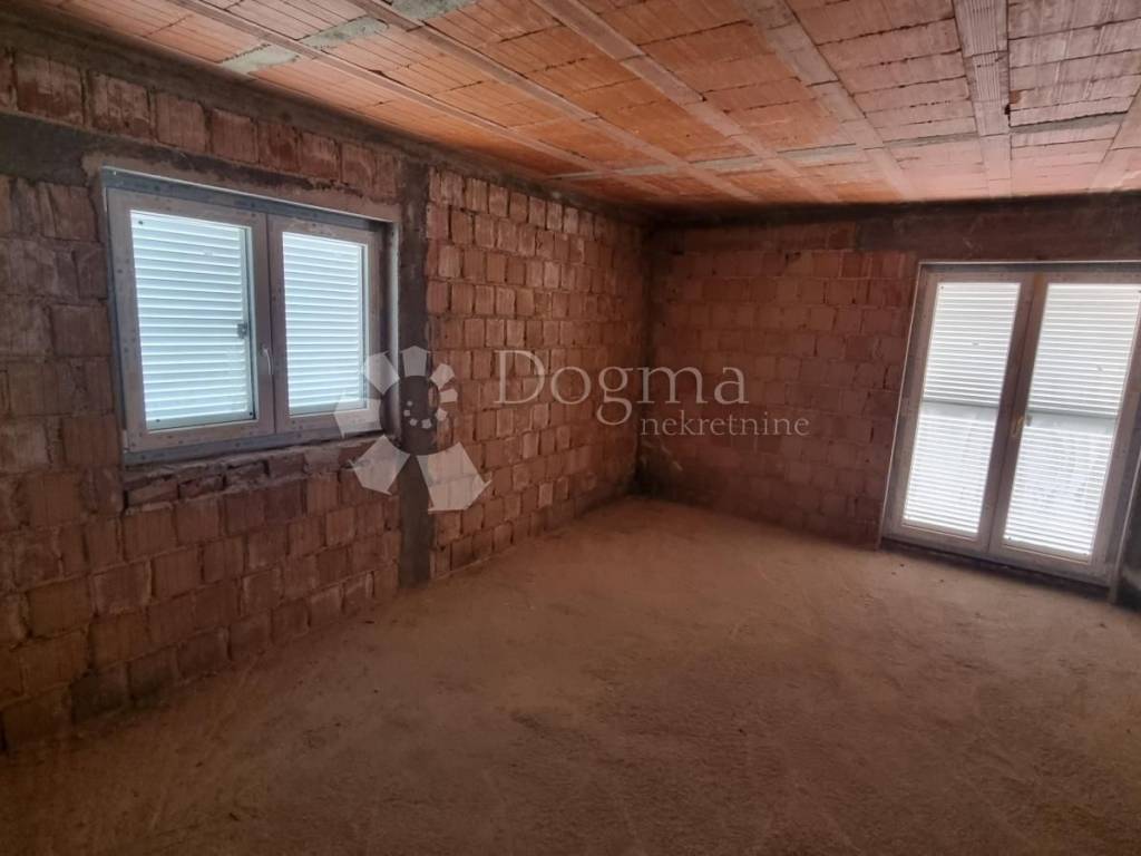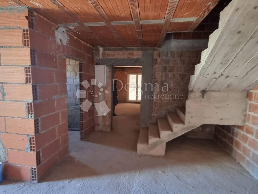 We offer an excellent opportunity in a wonderful location in the immediate vicinity of the town of Krk. House in ROH BAU phase with two separate units. Each unit has two separate flats/apartments. On the ground floor, an apartment of approximately 60 m2, and on the first floor, a two-story apartment of 100 m2 with an internal staircase. . Each floor has its own balcony with a beautiful panoramic view of the sea. The house itself is designed as a double building with two identical sides, so it can be divided between two owners.
