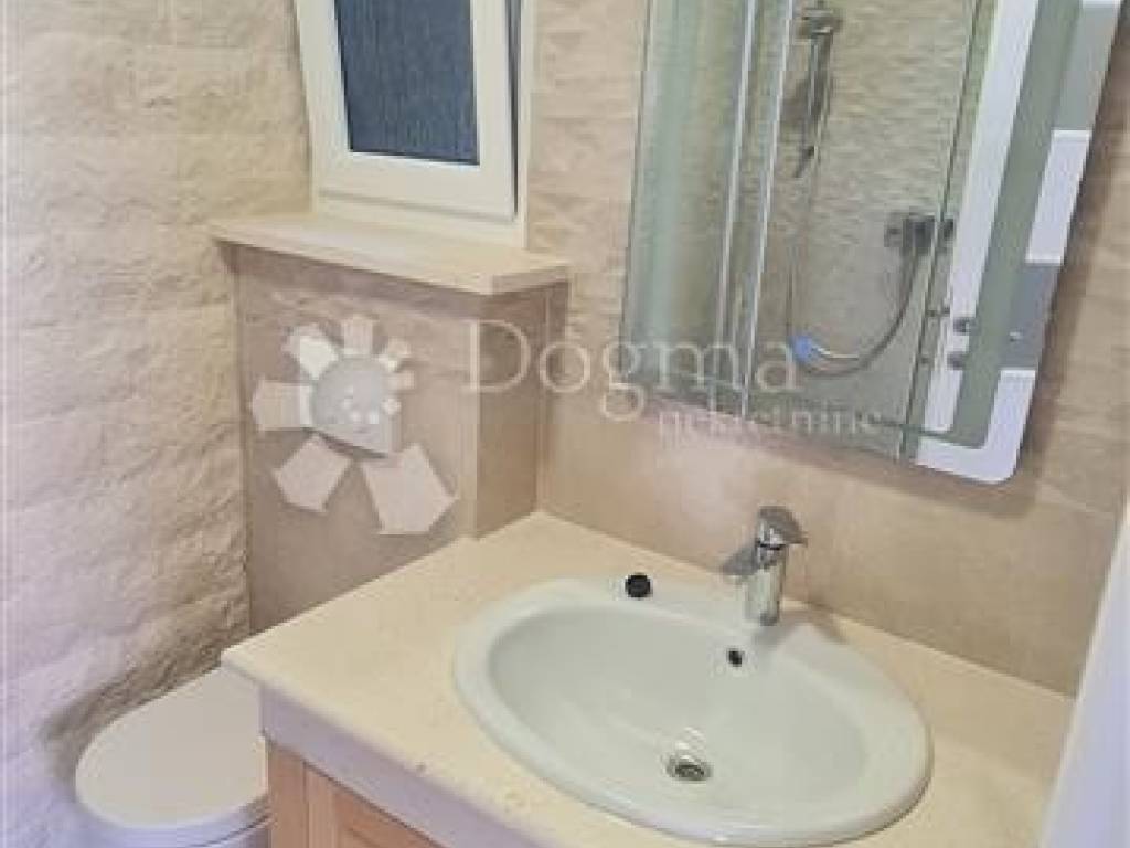 It consists of a nicely decorated kitchen with a dining room, and a spacious living room that opens onto a large terrace covered in Brac stone with a beautiful panoramic view of the sea. There is a built-in grill and a small storage room on the terrace, and there is also a connection for a jacuzzi.