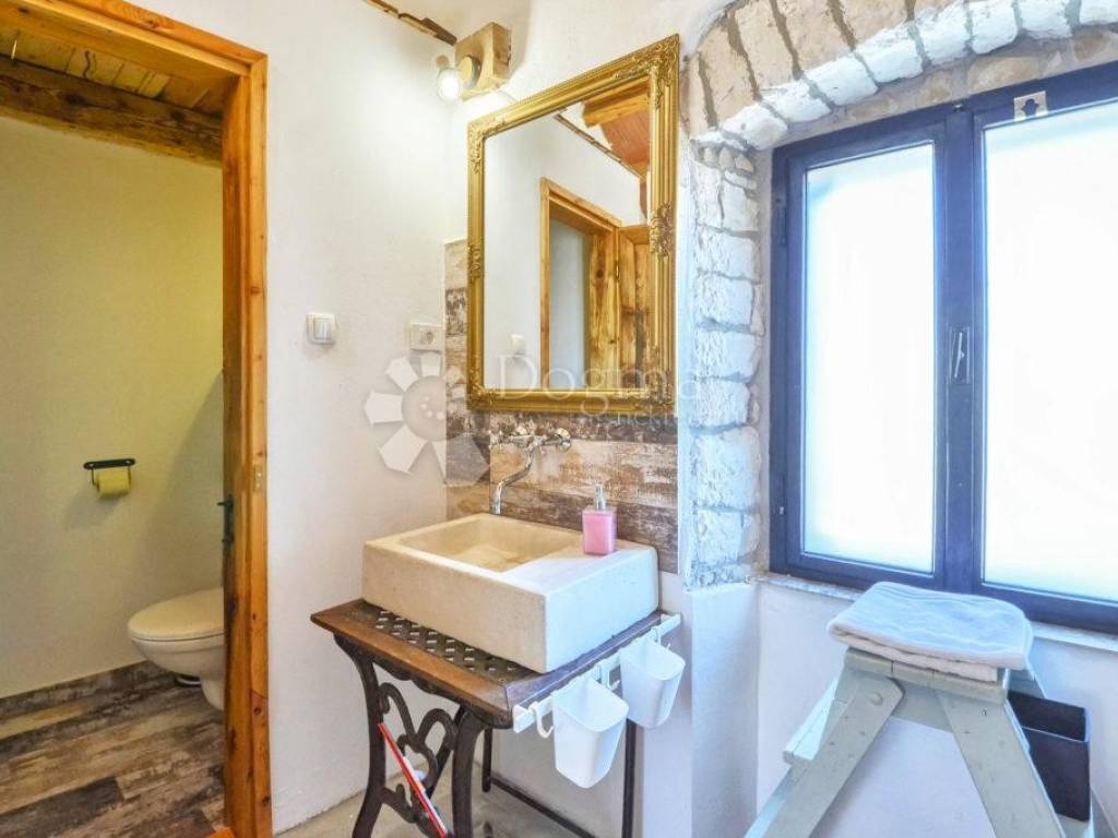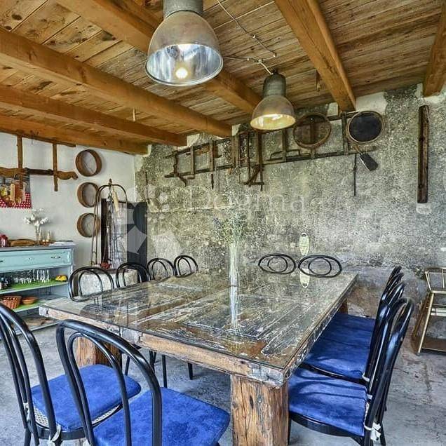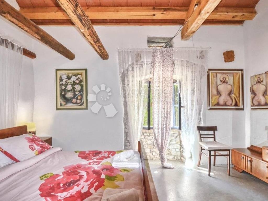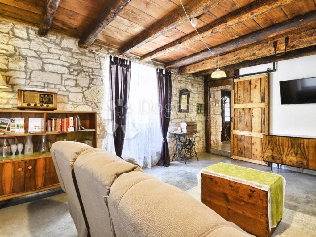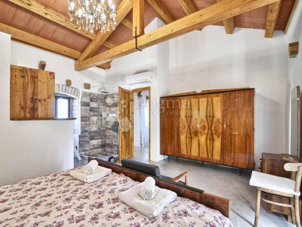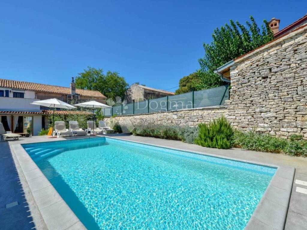 Beautiful rustic house with a total area of 555 m2, of which the house is 350 m2 and the garden with pool 205 m2. In a quiet village, only 1 km from Svetvincenat, 15 km from Rovinj and 15 km from Pula. The rustic house spreads over two floors - ground floor and first floor. The ground floor has an open-plan living room, kitchen with dining area, toilet and a large terrace as an ideal place for barbecue by the pool. Upstairs are two more bedrooms, each with its own bathroom. The large landscaped grassy yard, planted with Mediterranean plants, is dominated by a swimming pool. The building is air conditioned, fully furnished with quality furniture and is for sale. In front of the house there is a parking space. For more information call: 099 350 33 69