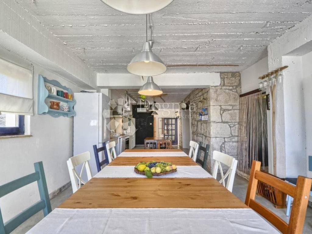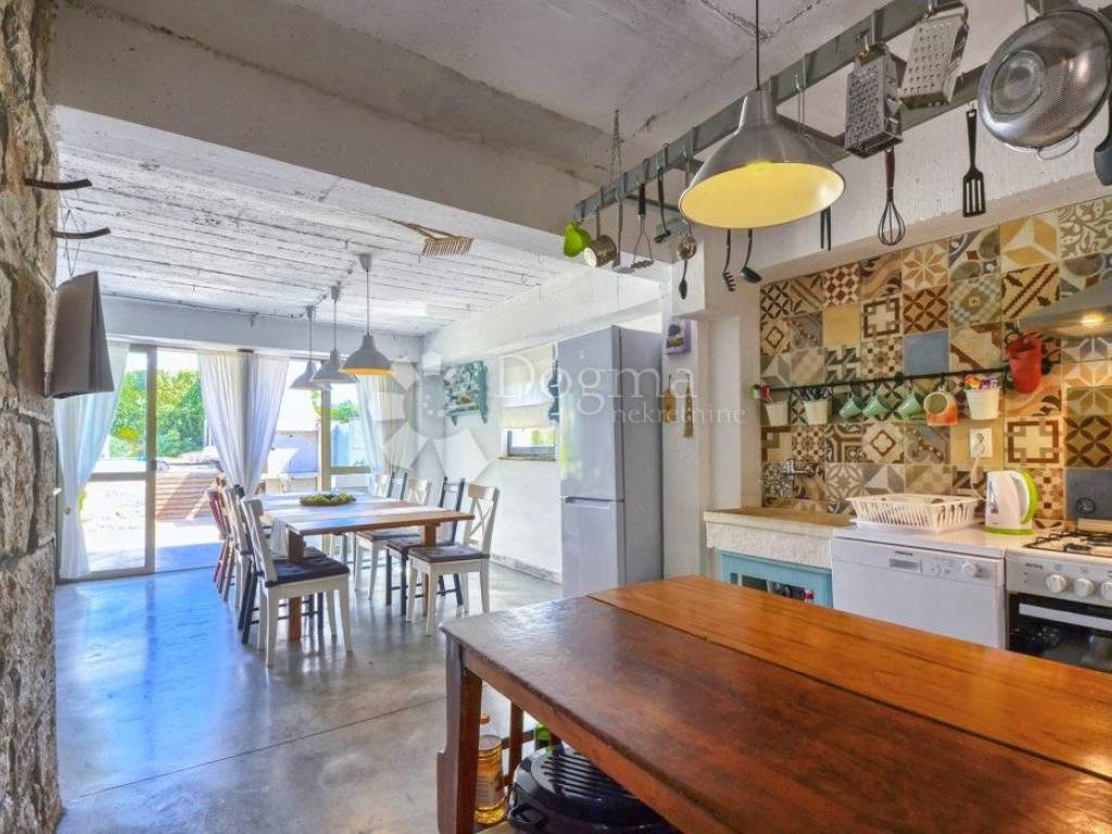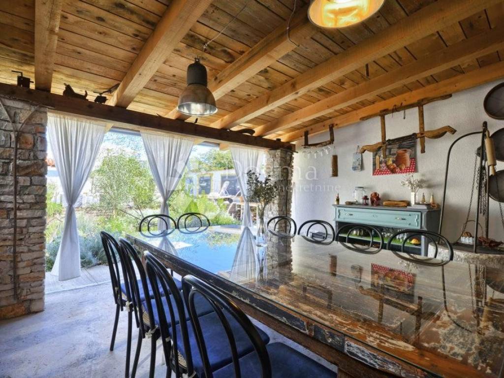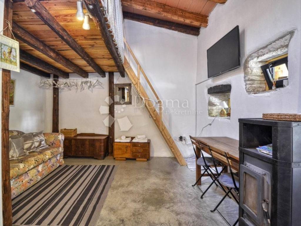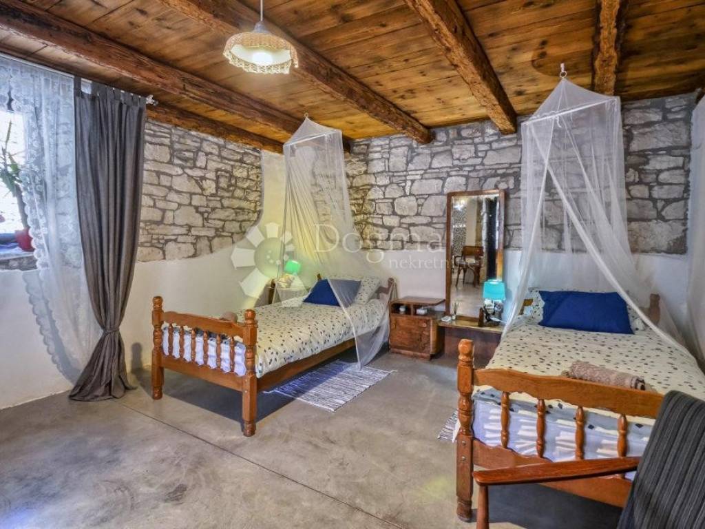 Beautiful rustic house with a total area of 555 m2, of which the house is 350 m2 and the garden with pool 205 m2. In a quiet village, only 1 km from Svetvincenat, 15 km from Rovinj and 15 km from Pula. The rustic house spreads over two floors - ground floor and first floor. The ground floor has an open-plan living room, kitchen with dining area, toilet and a large terrace as an ideal place for barbecue by the pool. Upstairs are two more bedrooms, each with its own bathroom. The large landscaped grassy yard, planted with Mediterranean plants, is dominated by a swimming pool. The building is air conditioned, fully furnished with quality furniture and is for sale. In front of the house there is a parking space. For more information call: 099 350 33 69