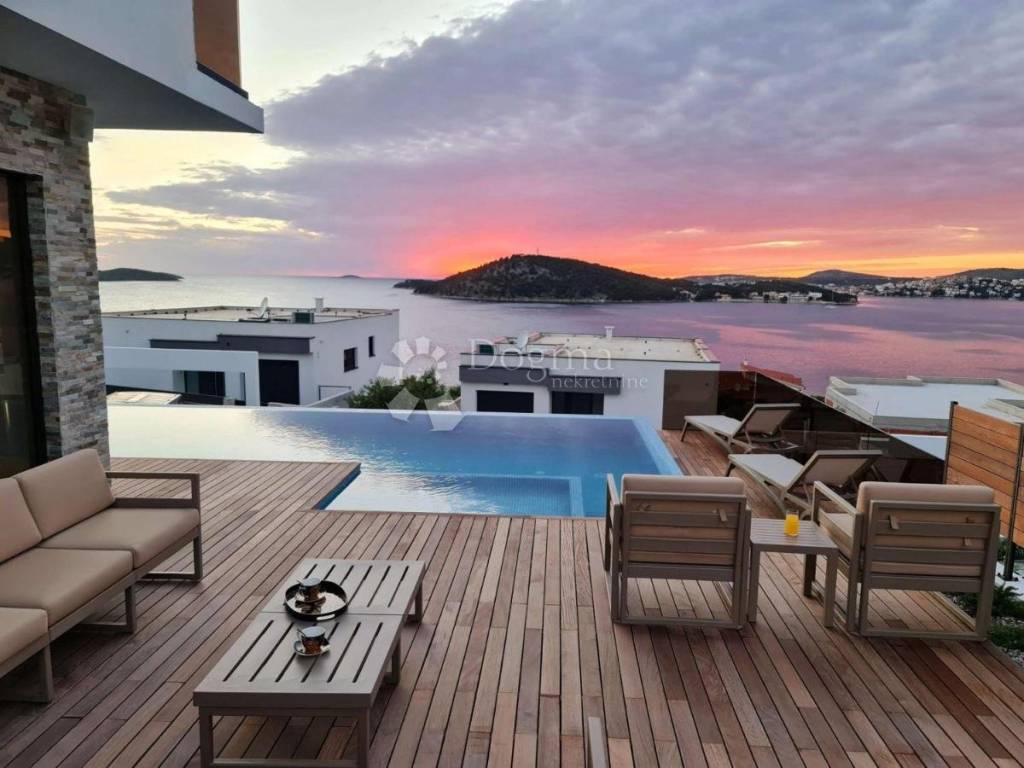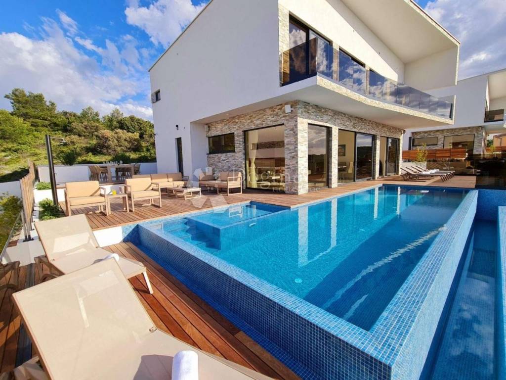 This modern villa with a swimming pool is located in a residential part of the town where luxury and modern buildings predominate, on a hill with a fantastic sea view.