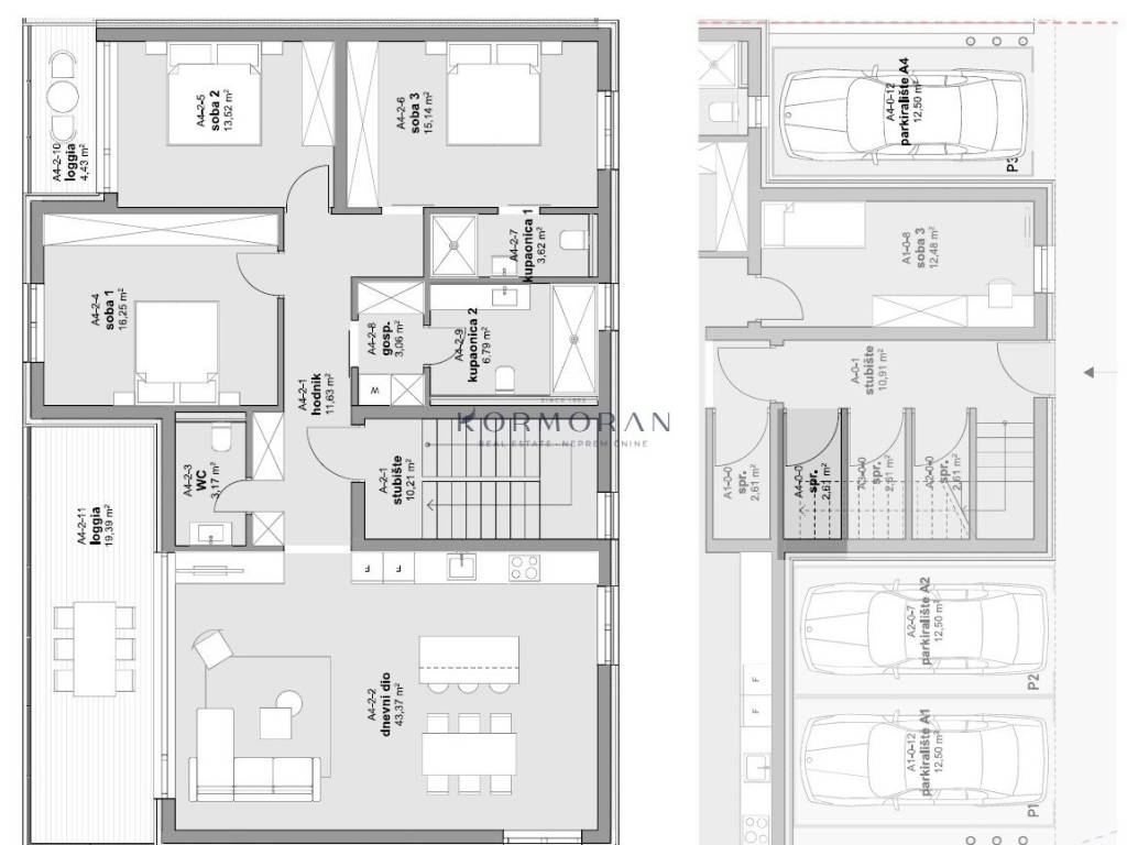 All rooms have air conditioning and underfloor heating with individual thermostats, while French windows with electric blinds and mosquito nets provide plenty of light and comfort. A special feature of the apartment is a spacious private rooftop terrace with connections for electricity, water, and drainage – an ideal place for a jacuzzi or outdoor lounge. Preparation for a photovoltaic system is also planned. The apartment is part of a smart system, and access is unlocked by fingerprint, card, or PIN. The apartment includes 2 parking spaces with a car charger.