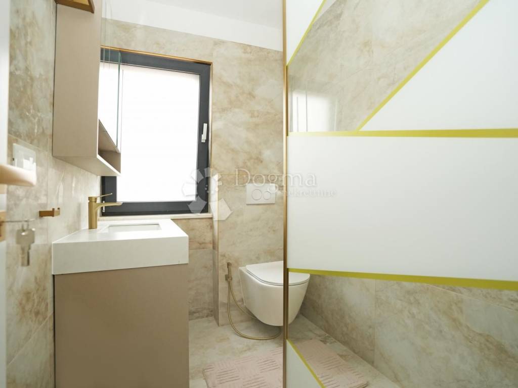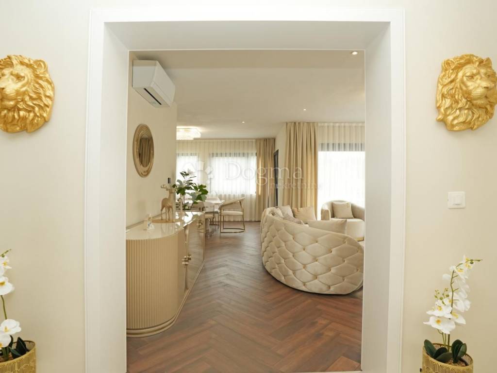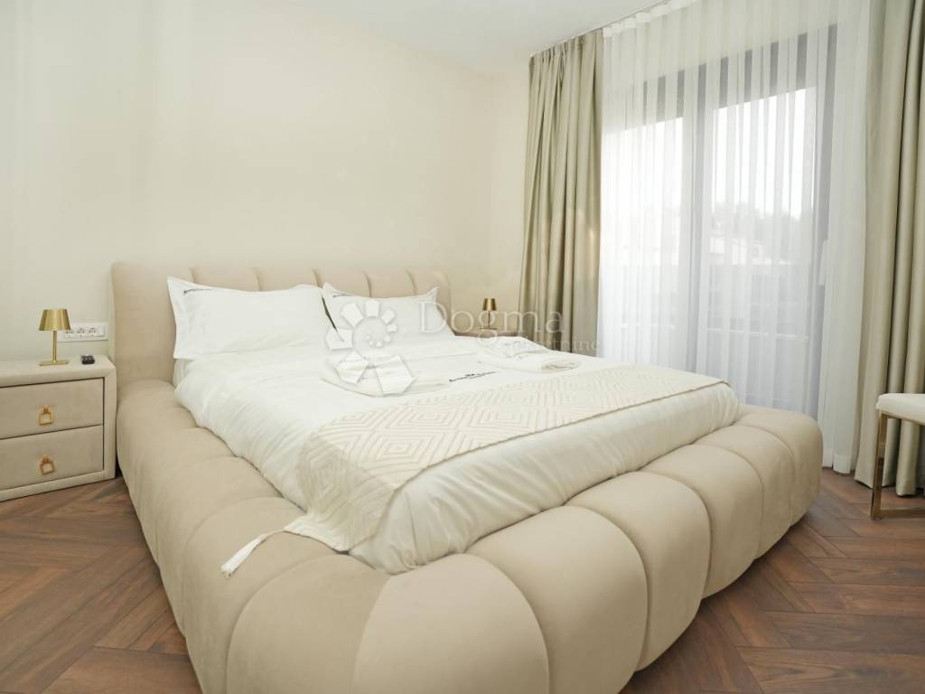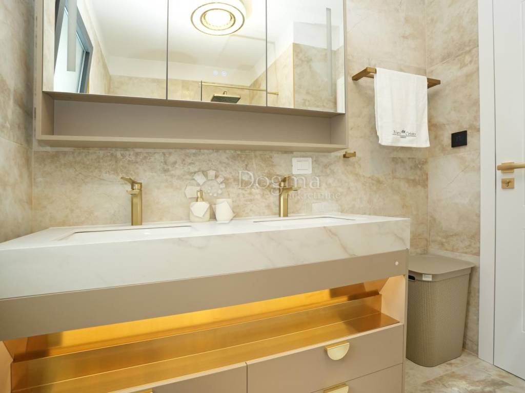 A luxurious apartment with a garden and a swimming pool is for sale in a modern new building, located only 500 meters from the sea in Rovinj.