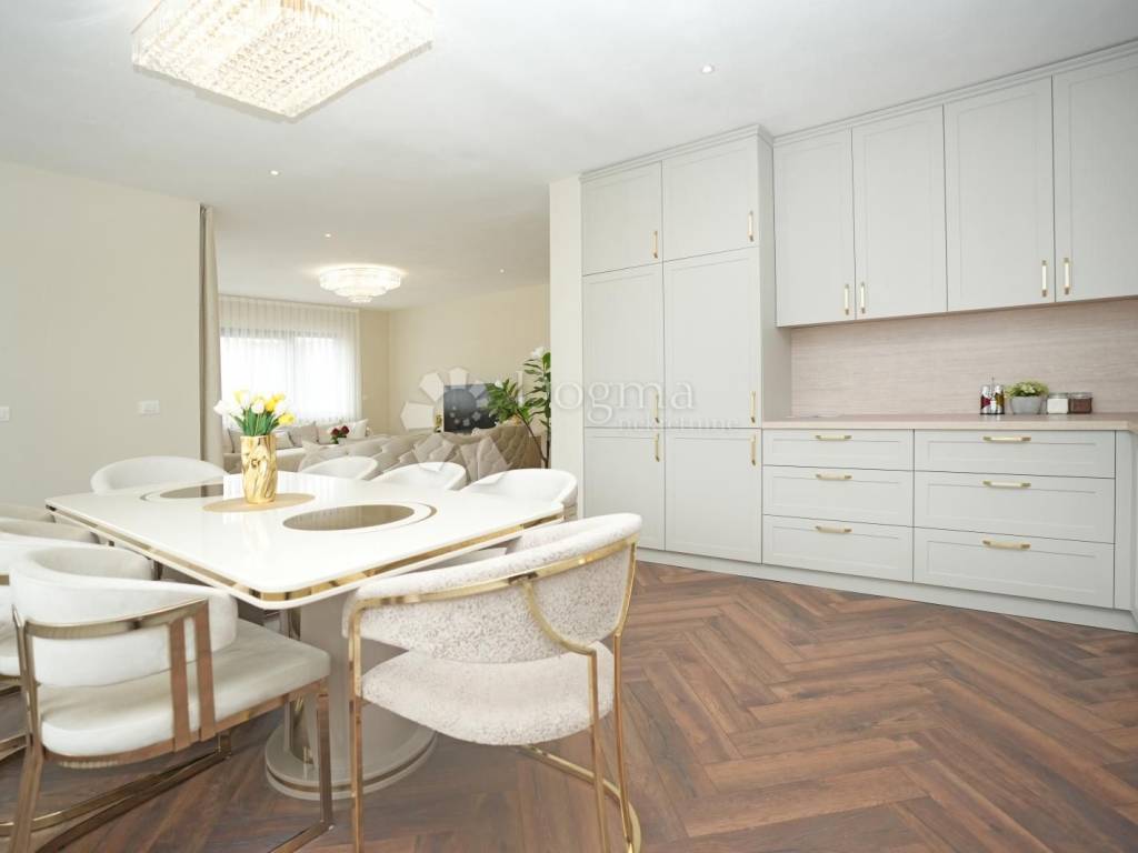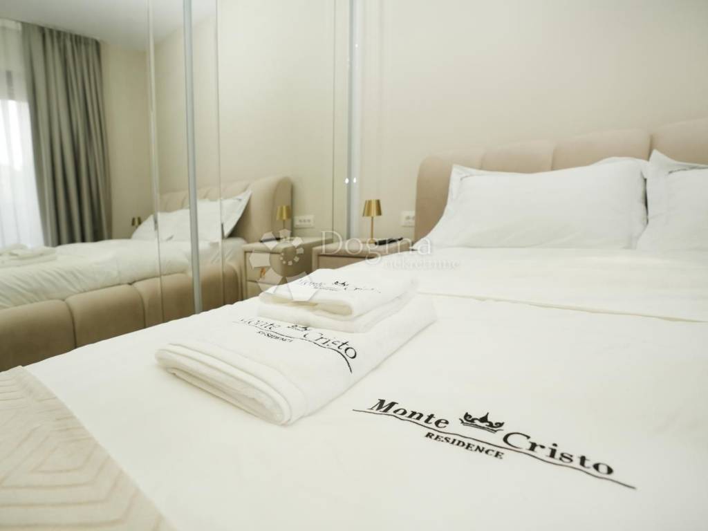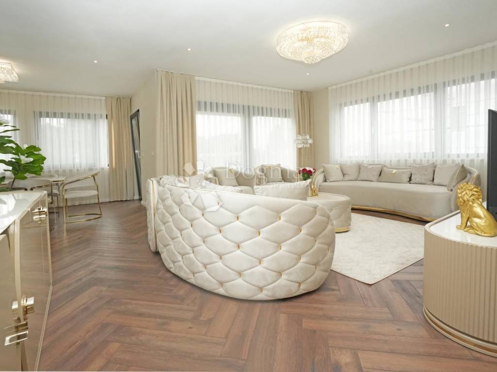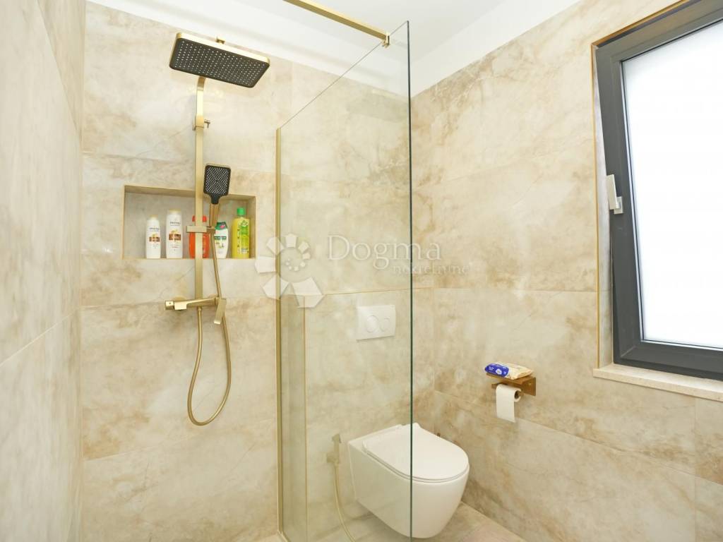 A luxurious apartment with a garden and a swimming pool is for sale in a modern new building, located only 500 meters from the sea in Rovinj.