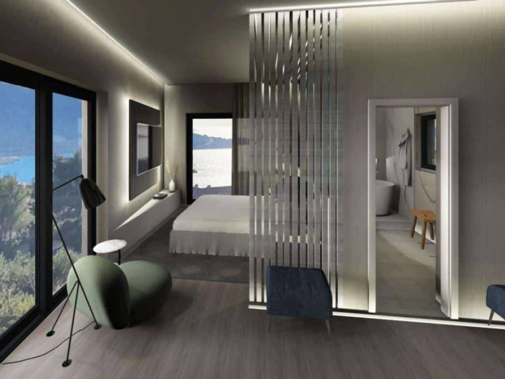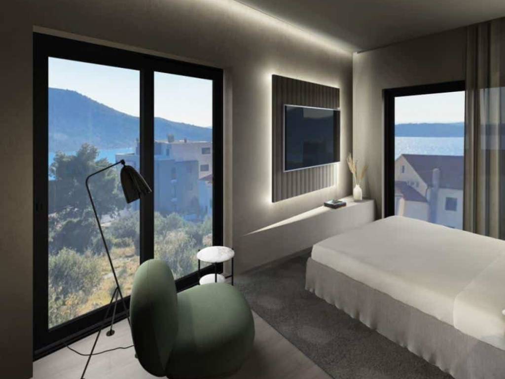 A new family house - a villa in Primošten is for sale, currently in the rough construction phase. It is located in a quiet part of Primošten, on a plot of land of approx. 550 m2, only 300 m from the sea and approx. 750 m from the center of the village. The interior living space of the villa has an area of 221.6 m2 + a summer kitchen of 27.5 m2 + a terrace of 22.8 m2. The villa is spread over two floors: ground floor and first floor. On the ground floor there will be a garage, engine room, wellness, kitchen with dining room, living room and toilet. In the yard there will be a covered summer kitchen and a swimming pool. An internal staircase leads to the first floor which contains of four bedrooms, each with its own bathroom and wardrobe, a storage room and a hallway. The master bedroom has access to a spacious, pergola-covered terrace of 22.8 m2. The following materials and equipment will be used during the construction and furnishing of the villa:- porotherm brick;- Styrofoam facade 10 cm;- PVC carpentry, lifting-sliding walls;- parquet/ceramic floors at the customer's choice in the price range according to the cost list;- blinds 5.2 mm, electric lifting;- air conditioning heating/cooling,- underfloor heating will be installed in part of the building via a heat pump (living room and bathrooms), separate cooling system;- concrete swimming pool, heated - heat pump;- a charging station for electric cars will be installed in the garage.This luxury facility will be categorized as 5 stars. There is a possibility of changing materials and equipment at the customer's choice and with additional payment, depending on the possibility of adaptation and the stage of the works performed on the building.The planned completion date of the facility is July 2025.