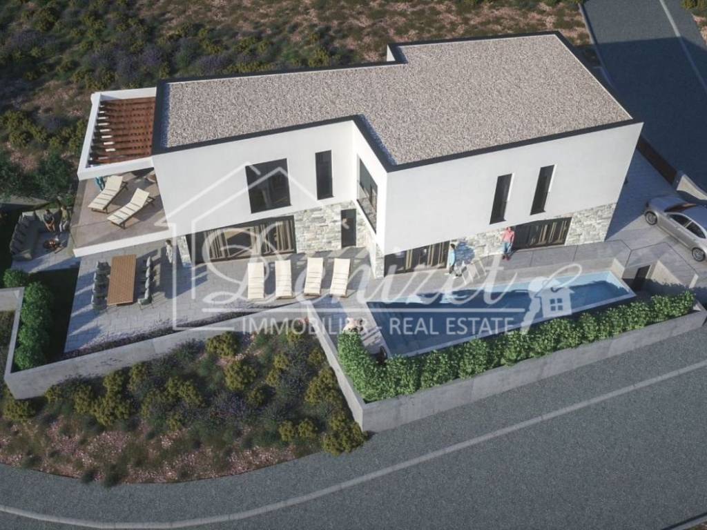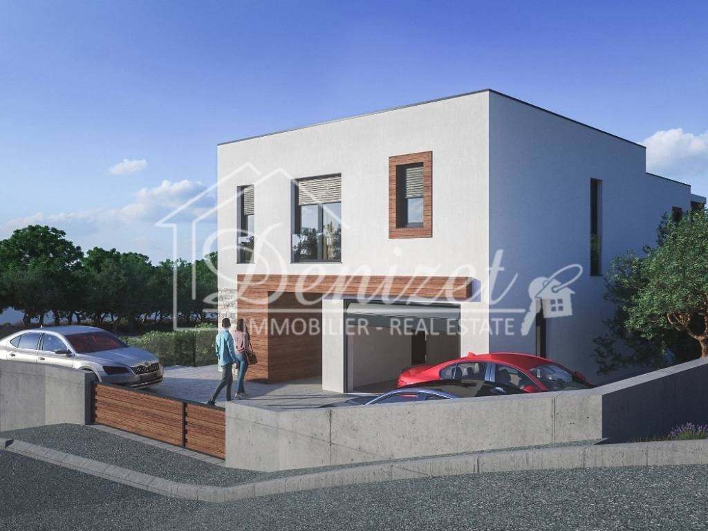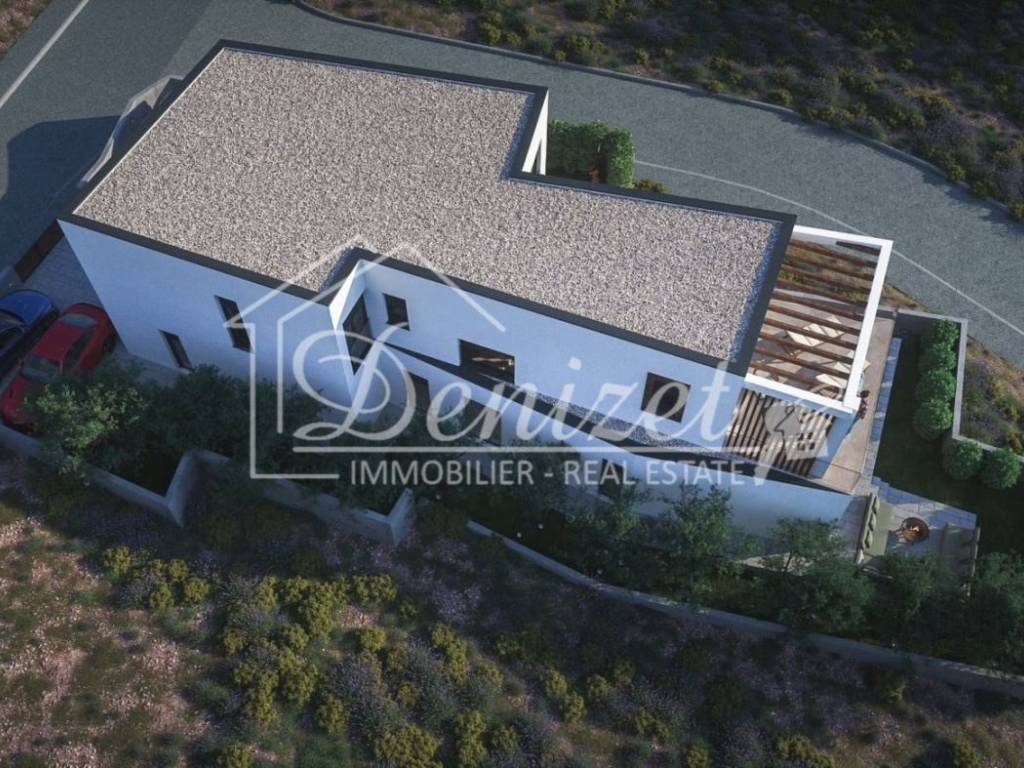 A new family house - a villa in Primošten is for sale, currently in the rough construction phase. It is located in a quiet part of Primošten, on a plot of approximately 550 m², only 300 m from the sea and about 750 m from the town center.