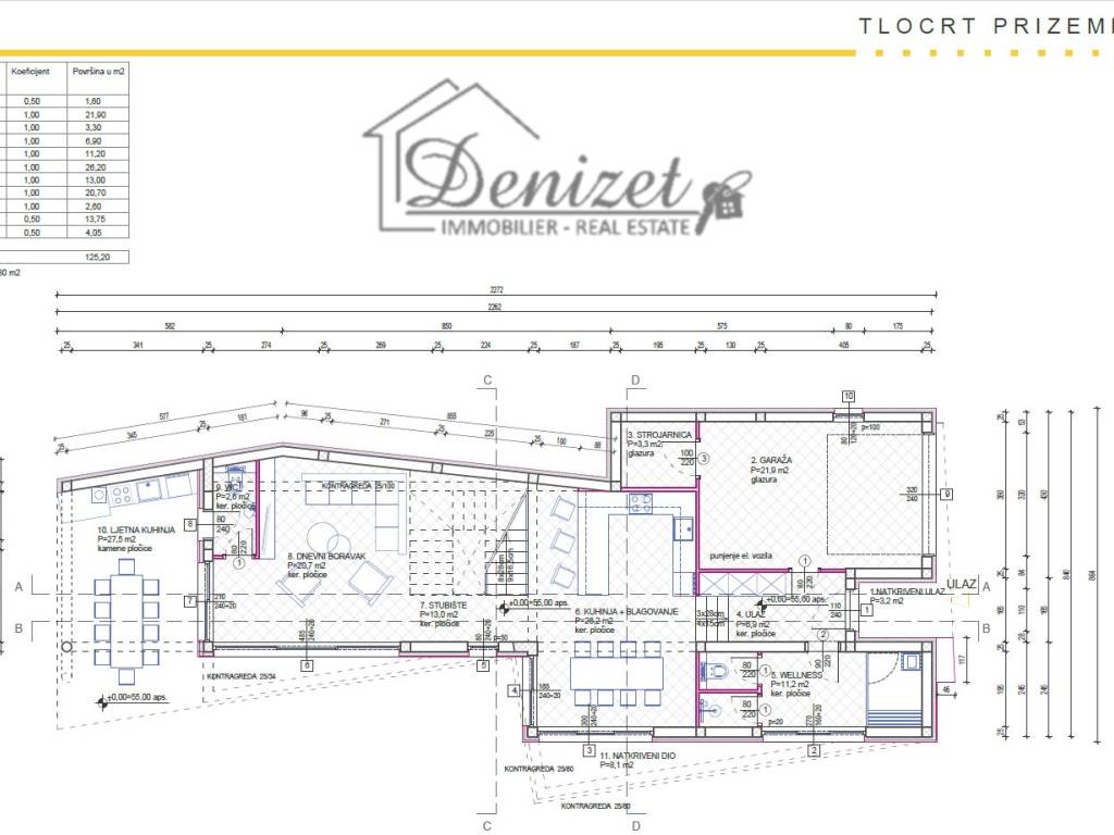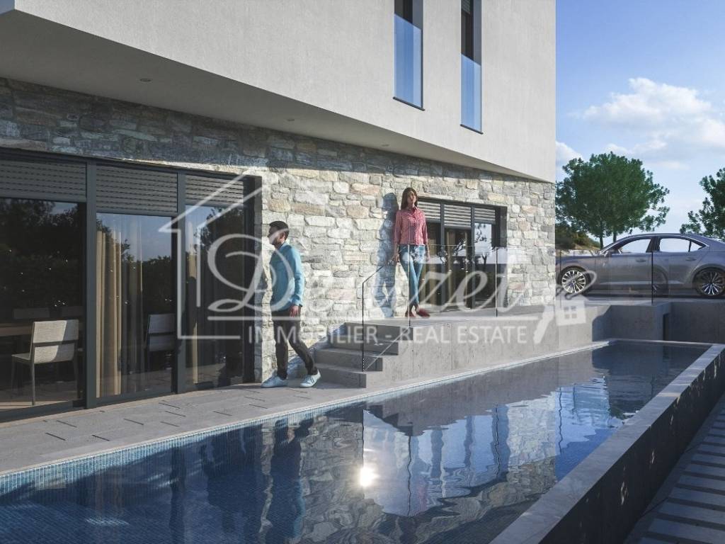 The ground floor will include a garage, utility/technical room, wellness area, kitchen with dining area, living room, and a guest toilet. The yard will feature a covered summer kitchen with dining area of 27.5 m², a swimming pool of 26 m2, and parking space for four cars.