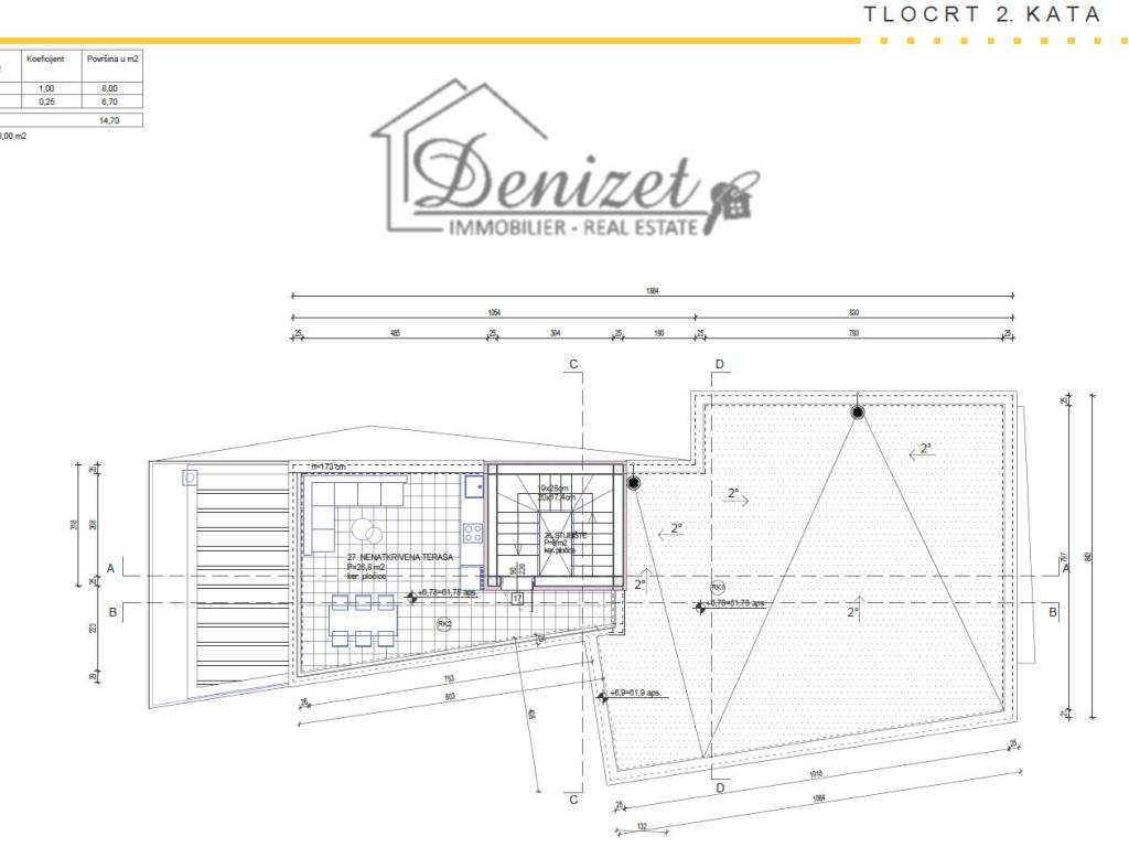 The total net area of the villa is 316.8 m². The villa will extend over two floors (ground floor and first floor) and will also have access to a rooftop terrace.