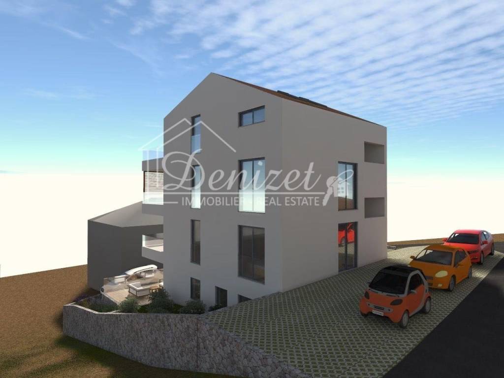 Three spacious apartments are for sale in a smaller residential building, located in an exceptionally attractive area of Trogir. The building is situated in a peaceful and pleasant environment, while still being in close proximity to all essential amenities needed for comfortable everyday living. It is only 400 meters from the sea and just 1 kilometer from the center of Trogir. The property extends over four floors, with the three available apartments located on the first three levels: the basement, ground floor, and first floor. Each apartment consists of three bedrooms, a bathroom, a separate toilet, and a spacious living room with a dining area and kitchen. All apartments have access to a large terrace, ideal for relaxing and enjoying the fresh air, while the basement apartment, in addition to the terrace, also offers its own private garden, providing extra privacy and a true sense of home. Each apartment also includes two outdoor parking spaces. Thanks to their southwest orientation, they are filled with natural light throughout the day, offering warmth, comfort, and beautiful sunset views. The building is constructed to a high standard and well-equipped, featuring reversible air conditioning units, underfloor heating, electric shutters, high-quality PVC joinery, premium ceramics, and more.