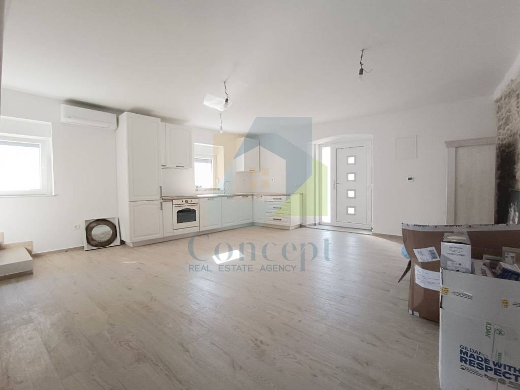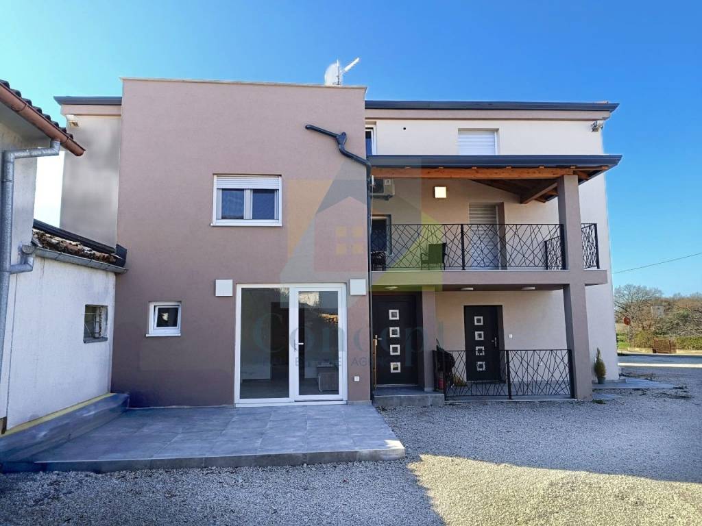 In a peaceful location, just 5 km from Poreč and the sea, a semi-detached house with a total net area of 126.10 m is for sale, spread over three levels. This property offers a functional layout and high-quality furnishings, and from the spacious terrace on the top floor, there is a beautiful view of the sea.