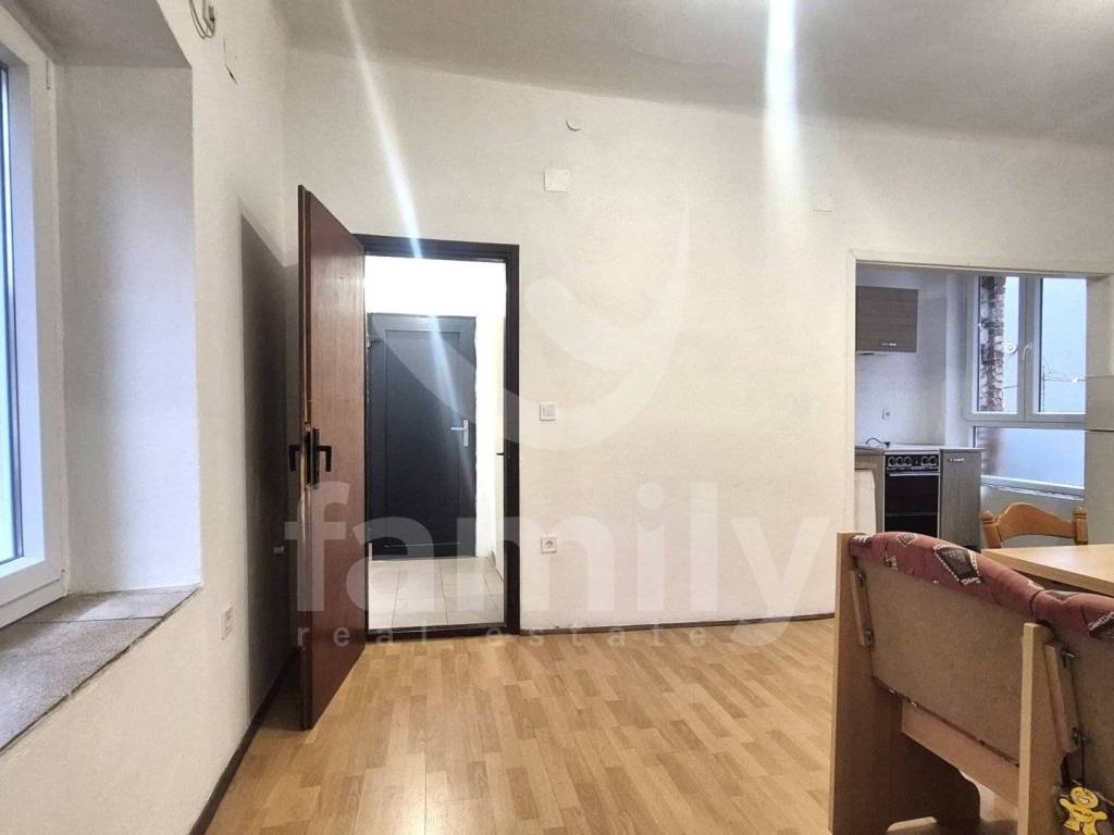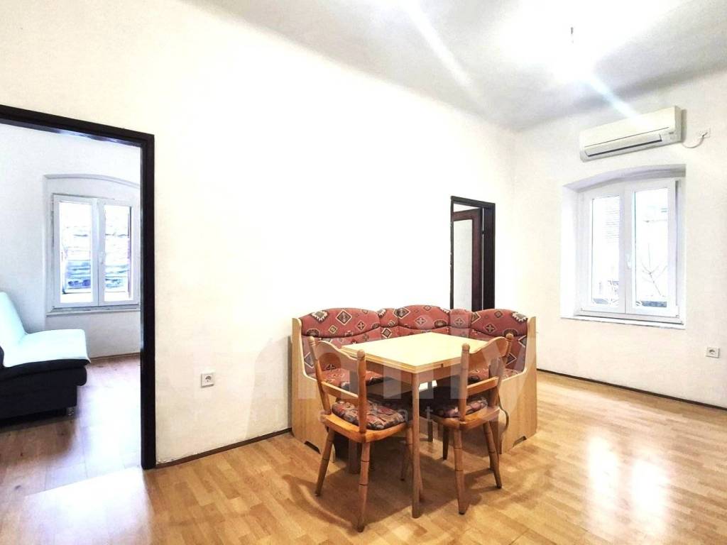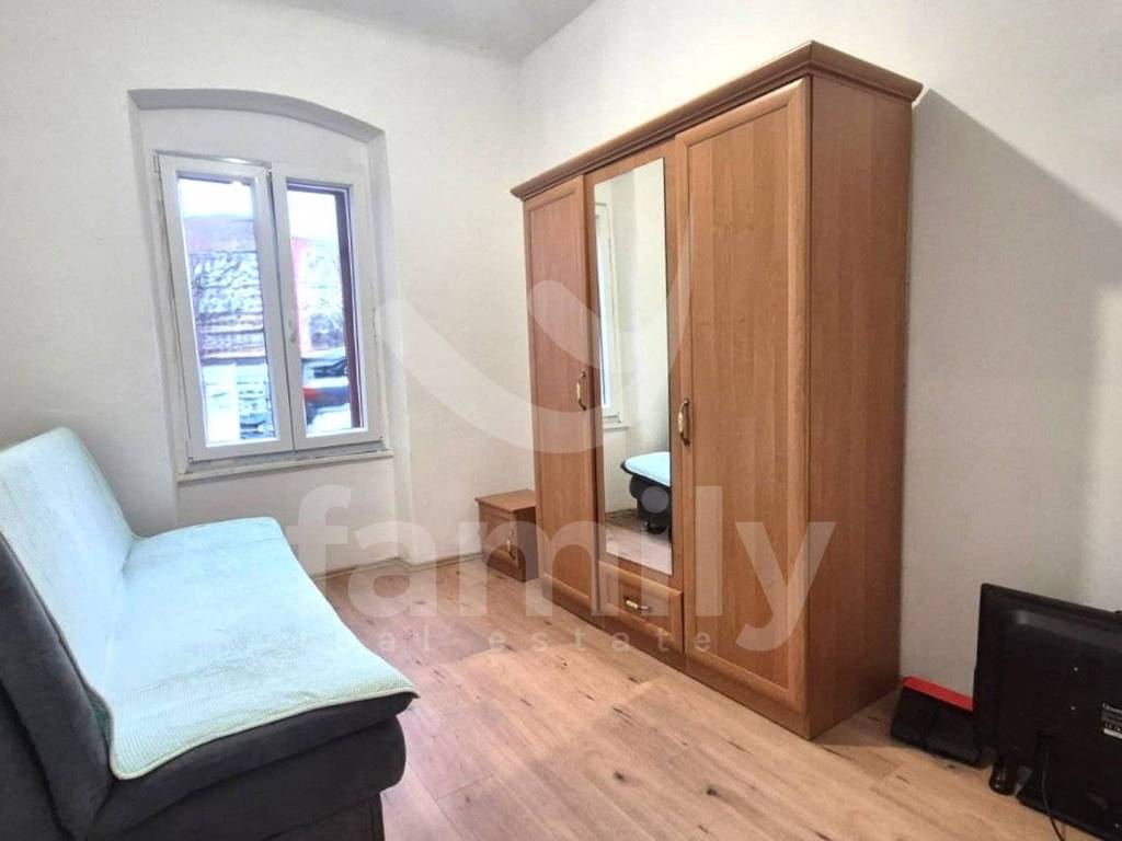 The apartment is located in a busy location with a total area of 41 m2. The apartment is located on the ground floor of the house and has been partially renovated, which gives the opportunity to decorate it to your own taste. The apartment has a small hallway with a large living room, a smaller bathroom, a dining room with a larger living room opening overlooking the yard. The living room is connected to the kitchen, two comfortable bedrooms. The floors throughout the building are covered with laminate, while the bathroom has ceramics, PVC joinery has been installed, and the heating and cooling system is regulated by an air conditioning unit. High ceilings also give the property a special charm and plenty of possibilities for beautification.