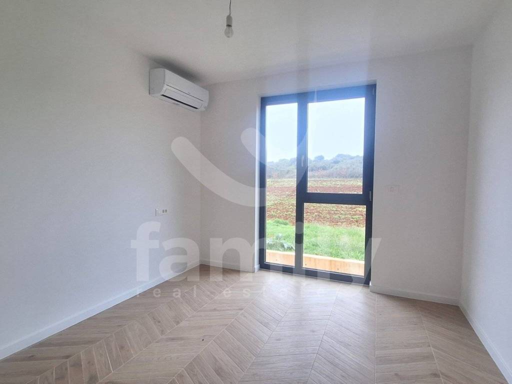 It is in Banjole, in a very quiet location, that the aforementioned modern and high-quality new construction of a small residential building by a proven investor with a total of 8 residential units is located. The aforementioned apartment, measuring 51.87 m2, is located on the ground floor and consists of an entrance hall equipped with a burglar-proof entrance door, one bright and comfortable bedroom with access to a terrace and garden, a spacious living room connected to an open-space concept kitchen and access to a terrace and garden with an area of 4,59 m2, as well as a bathroom equipped with a Geberit built-in cistern, a walk-in shower, installed installations for a washing machine, an Ariston boiler, and a ventilation system. The floors throughout the apartment are covered with high-quality ceramics, and the bedroom has Sherborne wood-imitation ceramics. The heating and cooling system is regulated by two Mitsubishi air conditioning units, one in the bedroom and one in the living room, and electric underfloor heating has also been implemented throughout the building with separate Wi-Fi thermostats in each room. PVC joinery with triple-glazed anthracite glass and aluminum roller shutters with electric lifts have been installed, and an anthracite-colored aluminum garden fence will also be installed. The building is equipped with an 8 cm thick thermal facade on the ground floor, with 2 cm thick Travertino classico stone also installed, which certainly contributes to excellent thermal and sound insulation. The apartment has one uncovered parking space as well as one shared toilet located in the hallway of the building, which will be co-owned by all co-tenants, and the work is scheduled to be completed by the end of 2025.