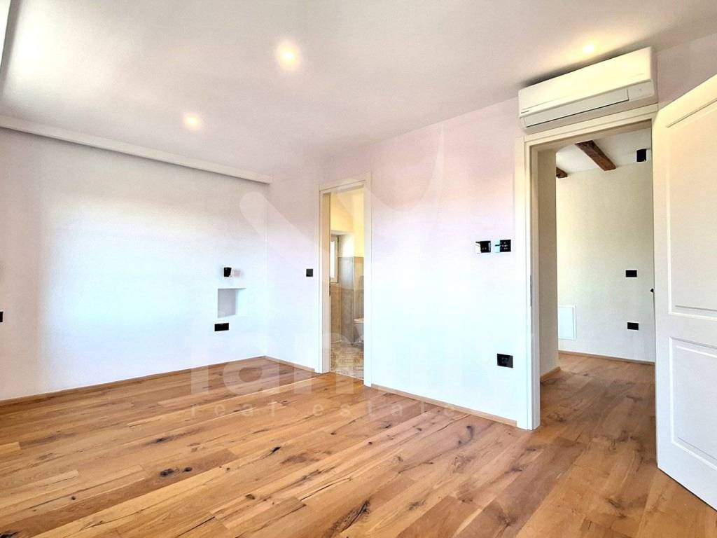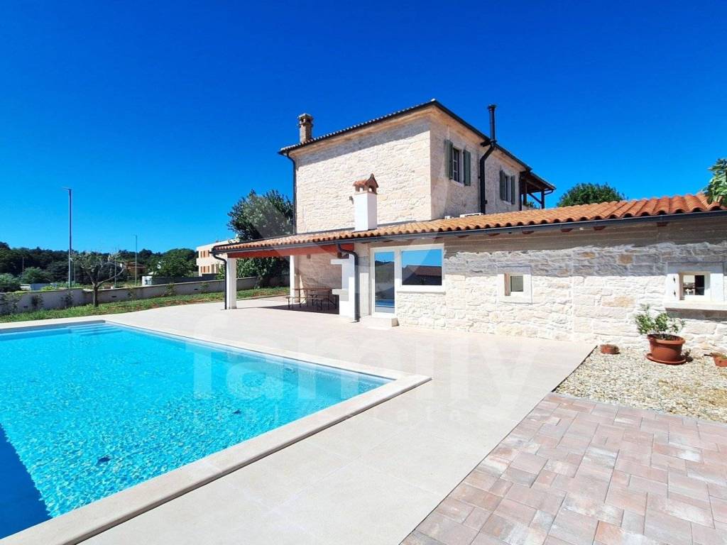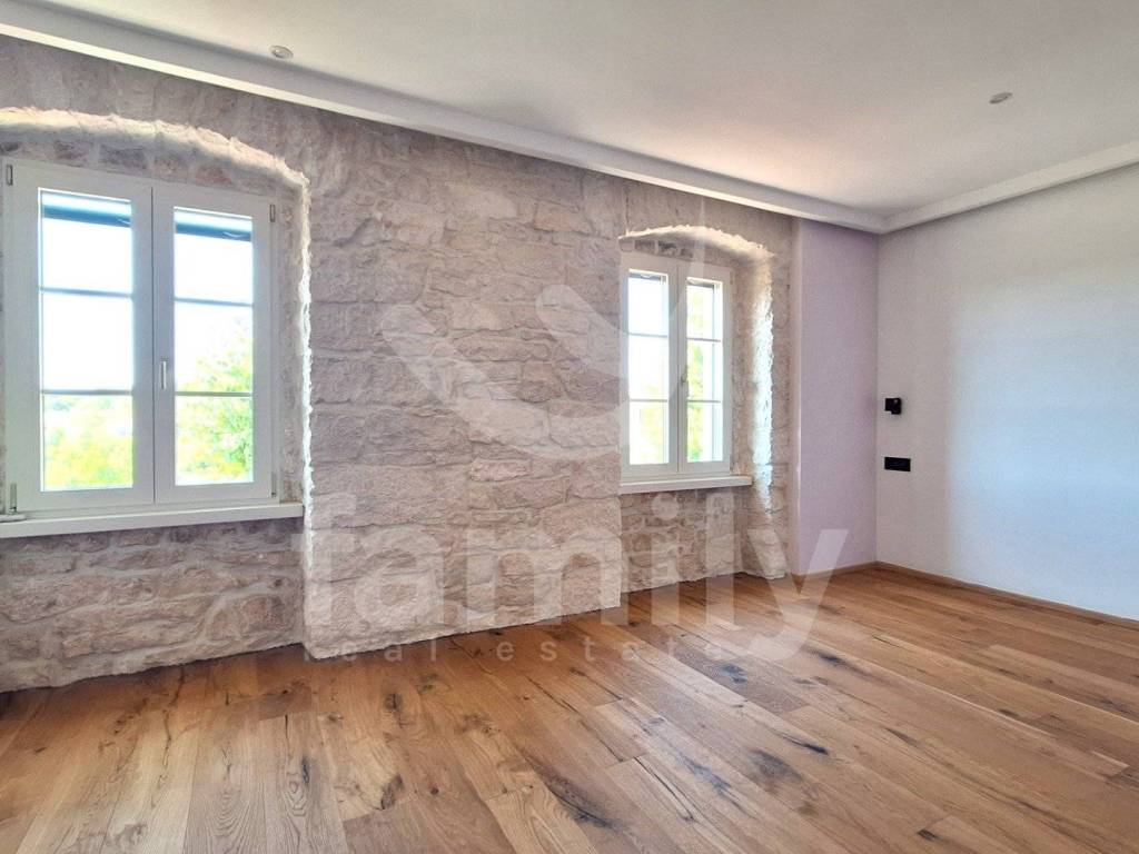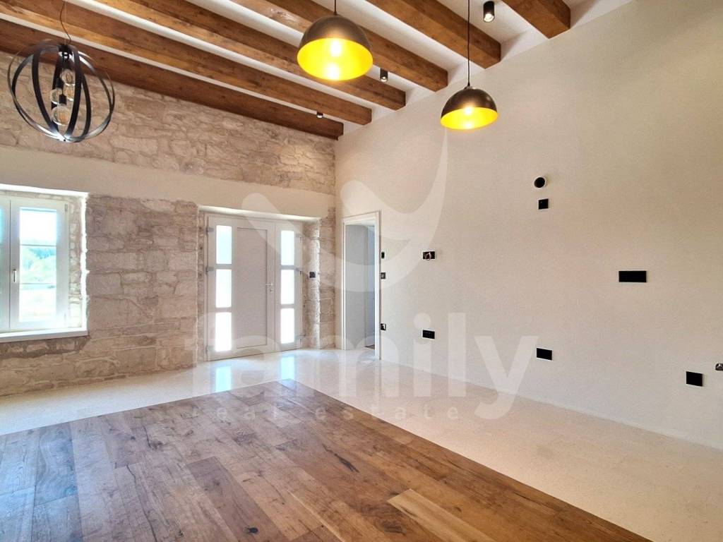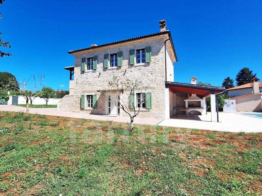 This economical, high-quality, unique stone villa with an area of 230 m2 on a plot of approximately 1100 m2 and a separate building plot of 800 m2 is located in Barban. The house was completely renovated this year and extends over two floors, ground floor and first floor. On the ground floor of this rare property there are two bedrooms in Istrian style, each with its own bathroom, a spacious living room with kitchen and dining room, and rooms that can serve the future owner as a tavern, wellness and gym, from which there is a view of the exterior of the property and the swimming pool, while next to the tavern there is a toilet with a laundry area. On the first floor there are two more bedrooms also with their own bathrooms and an extremely spacious covered terrace. Each bedroom and each bathroom is different from each other, with each retaining the Istrian flair and modern rustic style with stone and wooden cladding and wall tiles. The floor in the living room is covered with stone and wood, while the bedrooms have parquet flooring, which all goes well with the ambiance and stone. The heating and cooling system throughout the house is regulated by six indoor and outdoor air conditioning units, an indoor fireplace in the living room and underfloor heating installed throughout the property. The high-quality white PVC joinery is custom-made and three-layered with nine gas chambers and green external shutters. The boiler room on the ground floor of the property serves as a heat pump underfloor heating system, and the boiler room also leads to the basement, which can be used for various purposes by future owners. The exterior of the property is adorned with a spacious sundeck with a heated pool and outdoor shower, and a covered terrace with a fireplace and sink for complete relaxation and enjoyment during your stay outdoors. The yard is partially covered with greenery with planted olive trees and is carefully maintained, and partially covered with paving stones and 5 uncovered parking spaces are provided. The location is excellent in terms of proximity to the town center at only 200 meters, and yet in a quiet location and close to all the supporting facilities necessary for everyday life. A big plus is the building land next to the property and the possibility of additional construction.